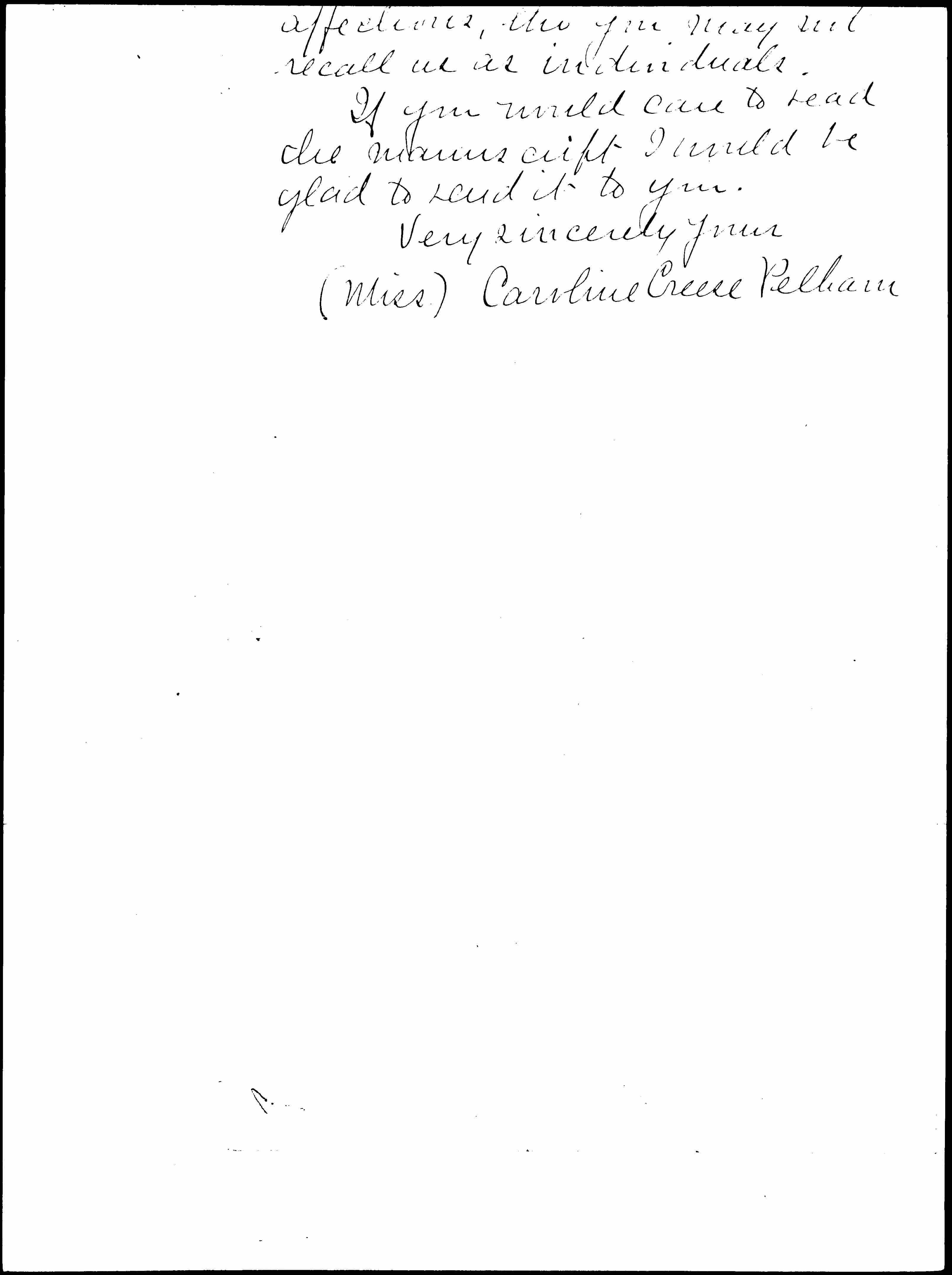 (Miss) Caroline Creese Pelham