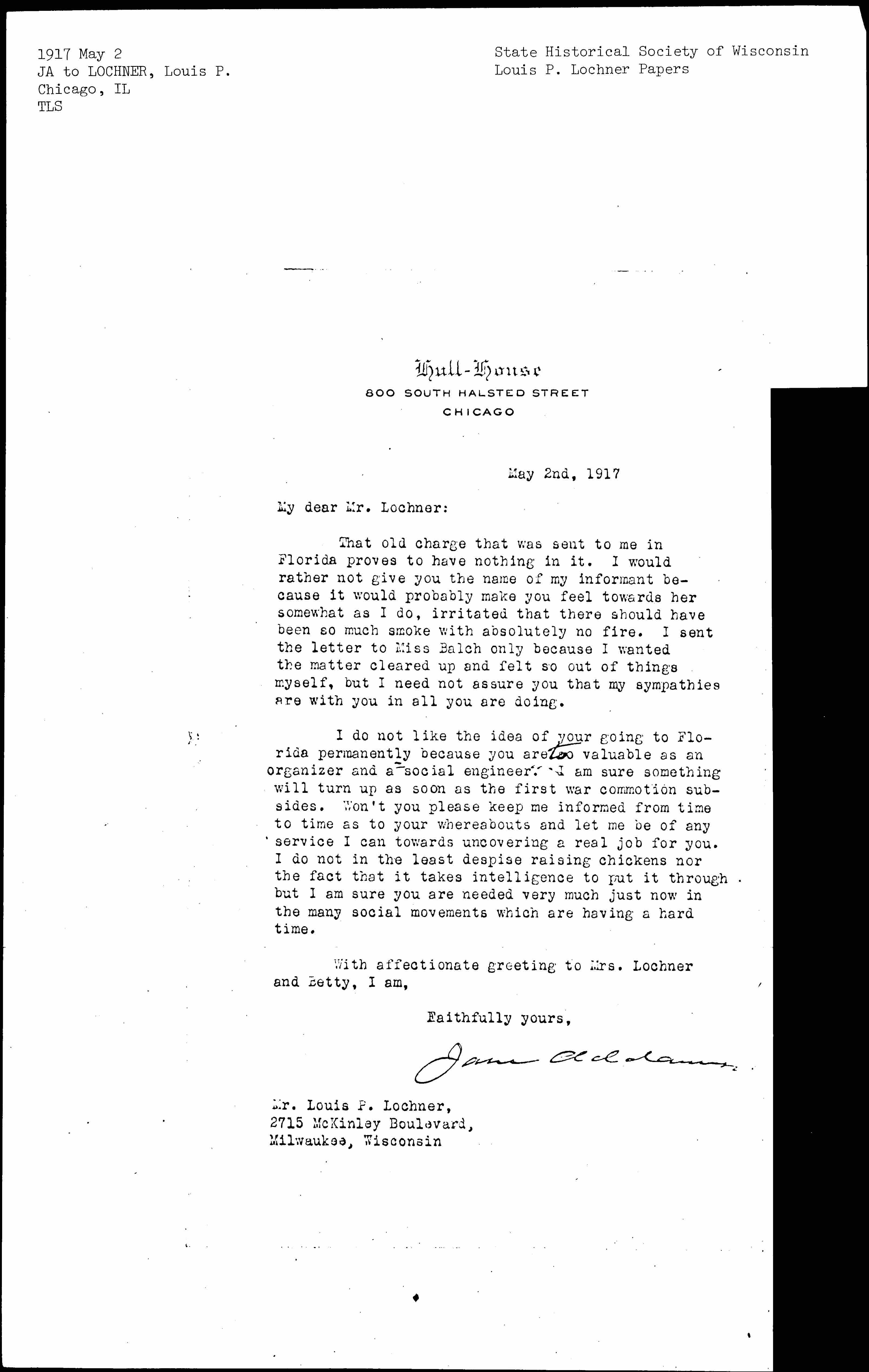 Jane Addams [signed]