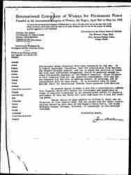 An earnest appeal is made to you for a contribution towards this Congress which will enable the conscience and experience of women to register themselves in an international effort to secure a settlement of this war which will give some hope for a just and lasting peace.