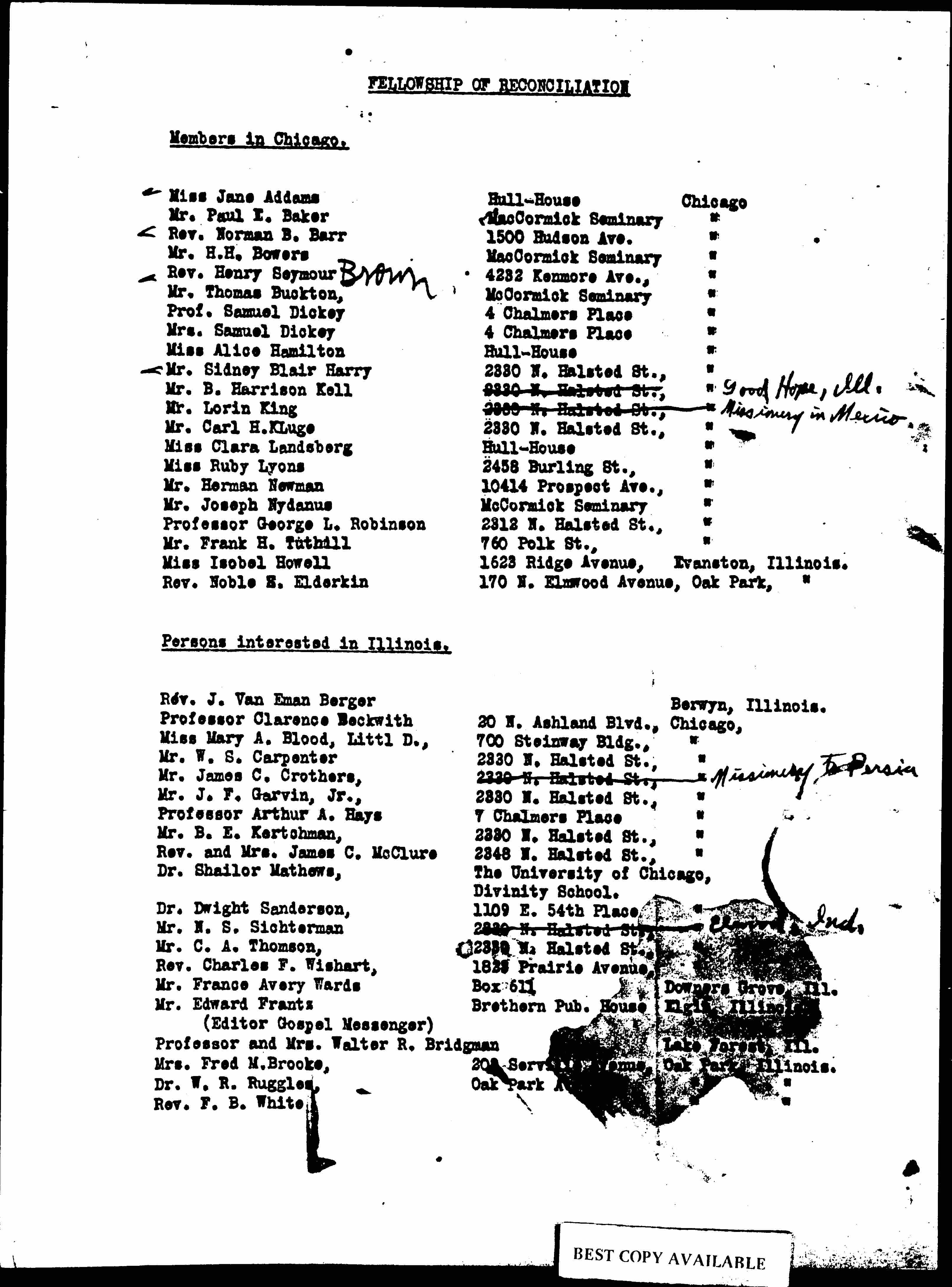 Mr. B. Harrison Kell 2330 N. Halsted St., [Chicago] <Good Hope, Ill.>