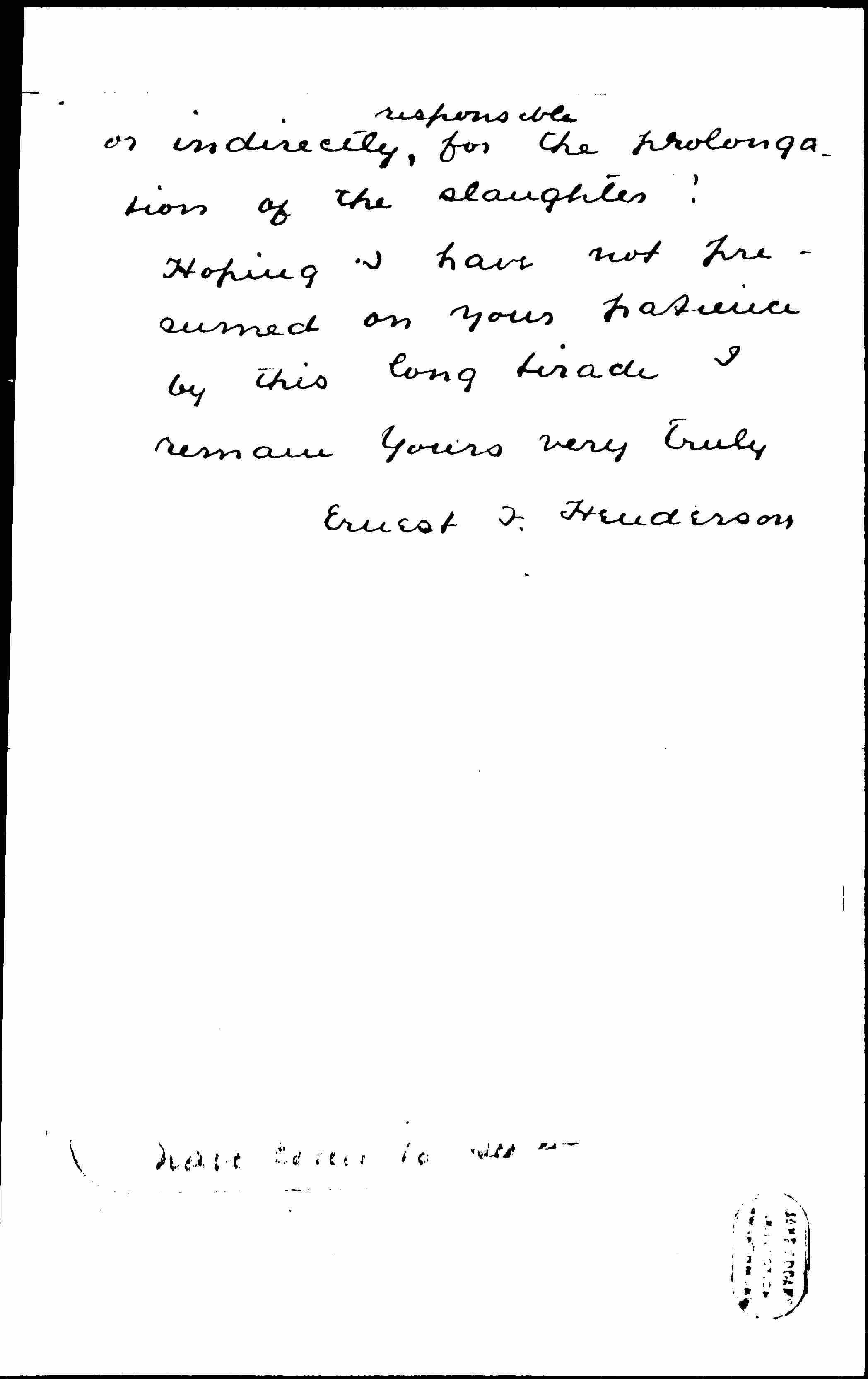 Hoping I have not presumed on your patience by this long tirade I remain Yours very truly