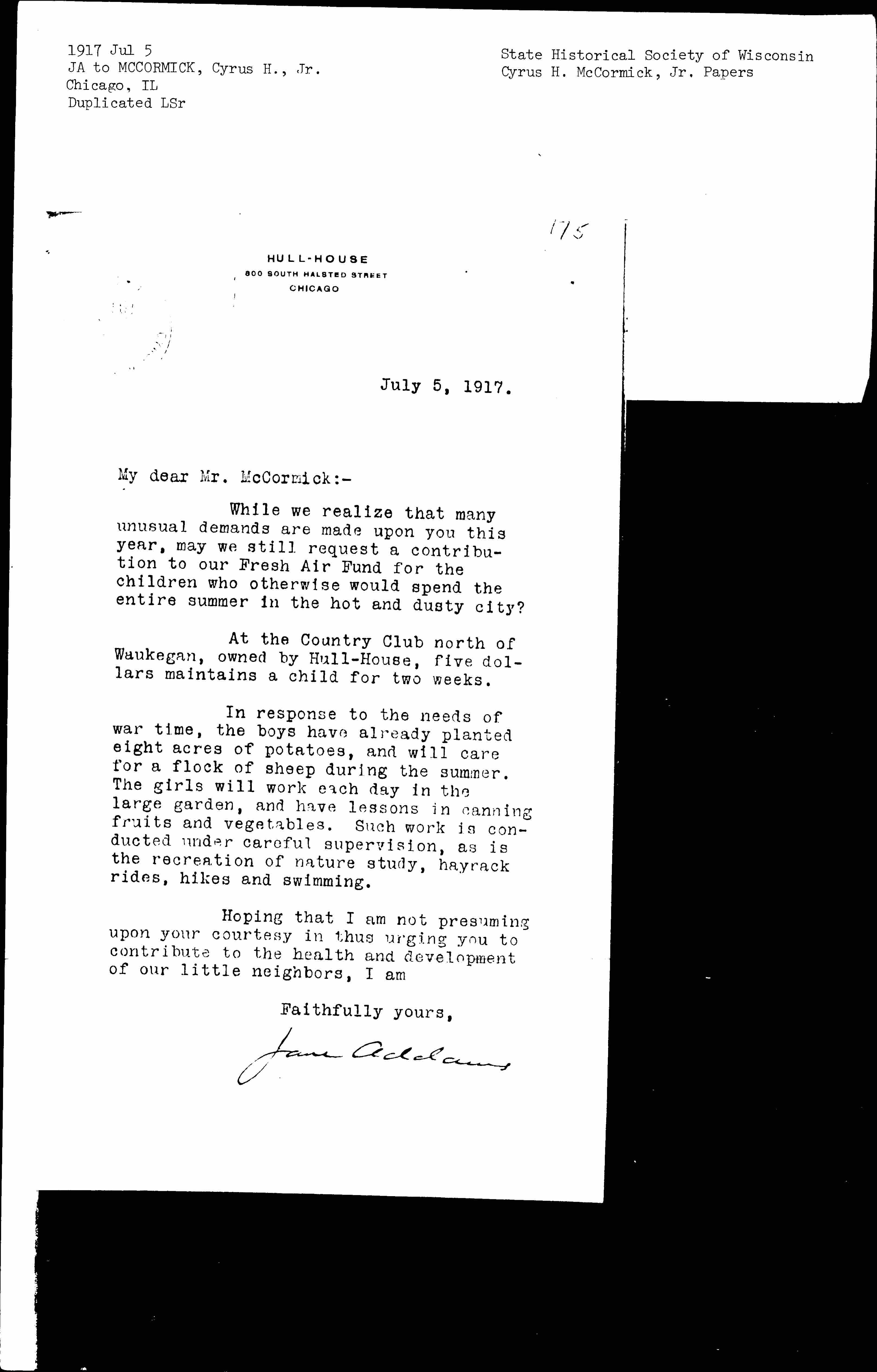 While we realize that many unusual demands are made upon you this year, may we still request a contribution to our Fresh Air Fund for the children who otherwise would spend the entire summer in the hot and dusty city?