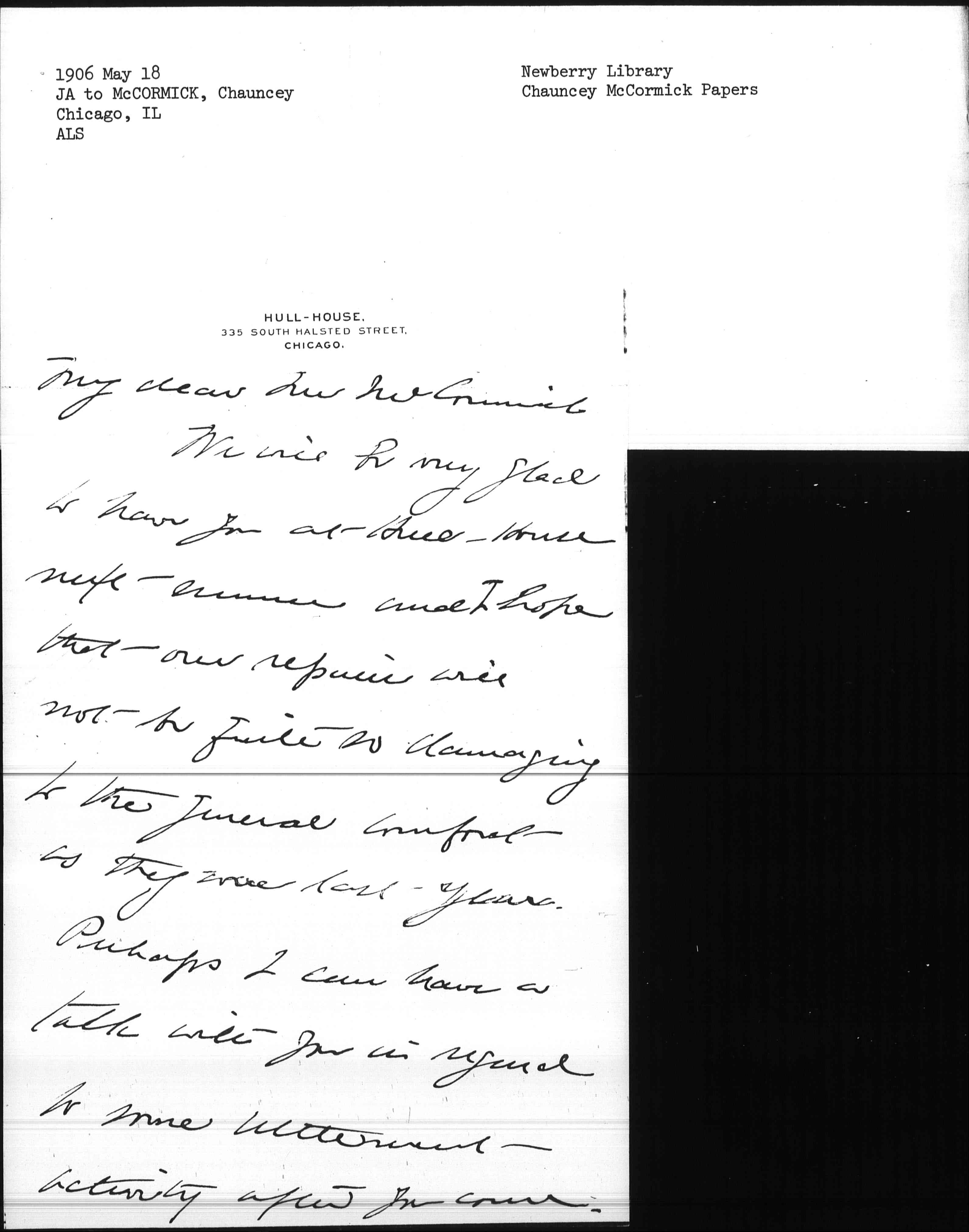 We will be very glad to have you at Hull-House next summer and I hope that our repairs will not be quite so damaging to the general comfort as they were last year.