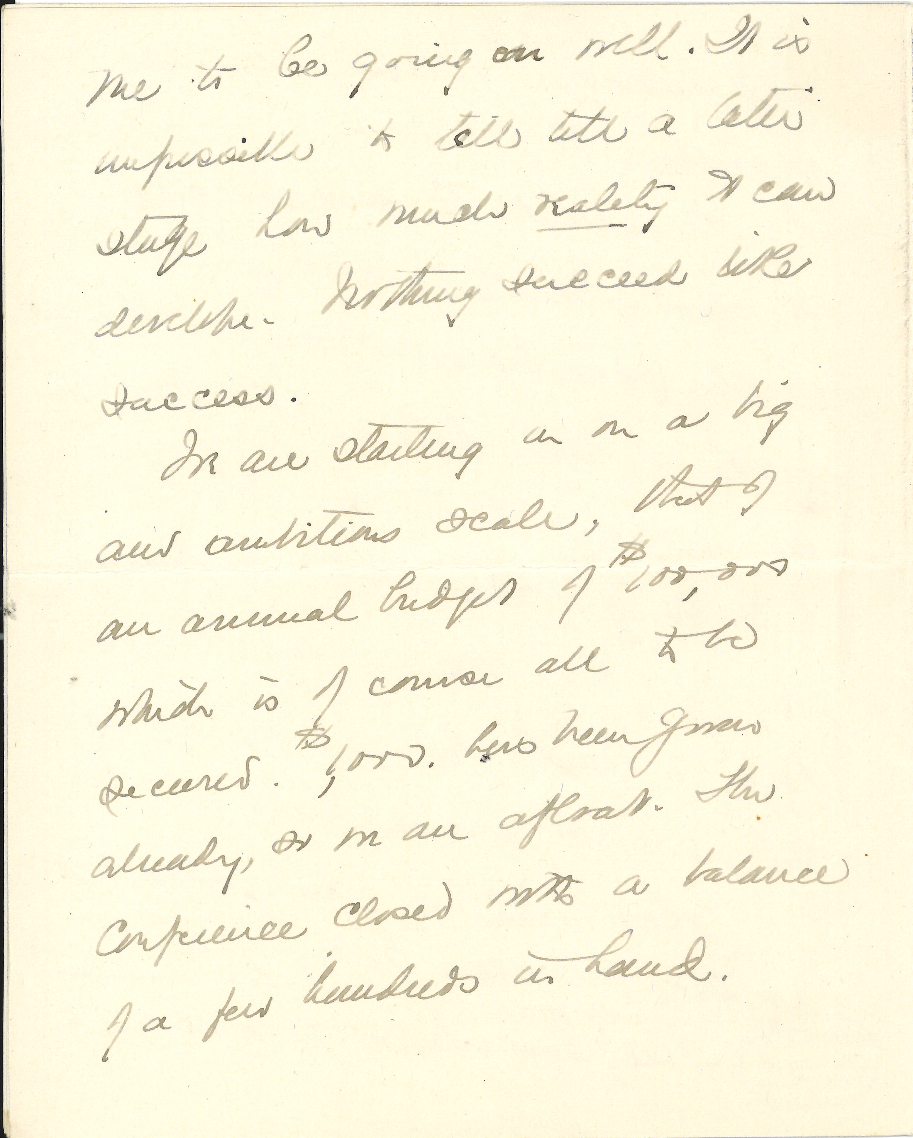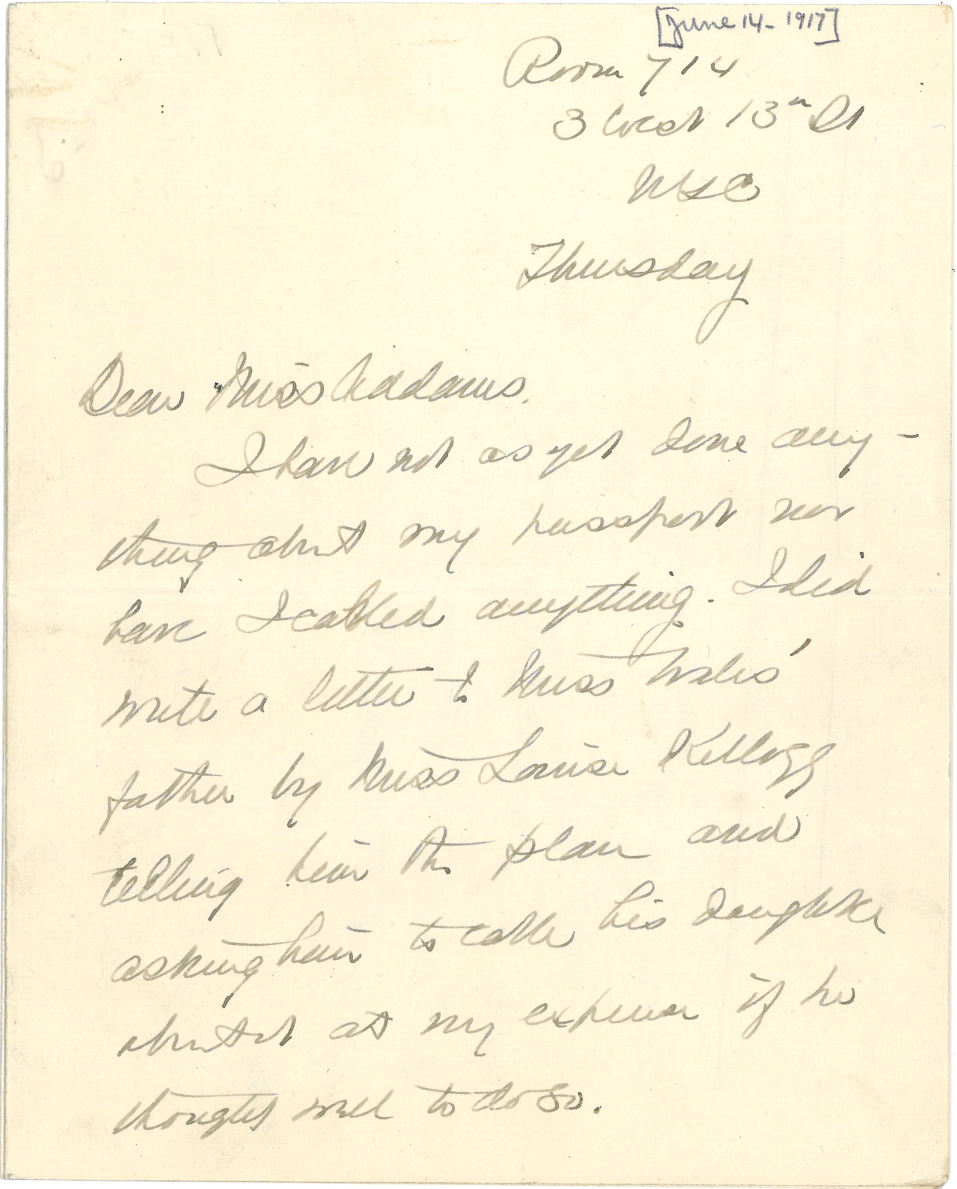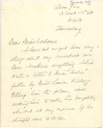 I have not as yet done anything about my passport nor have I cabled anything. I did write a letter to Miss Wales' father by Miss Louise Kellogg telling him the plan and asking him to call his daughter about it at my expense if he thought well to do so. [page 2]