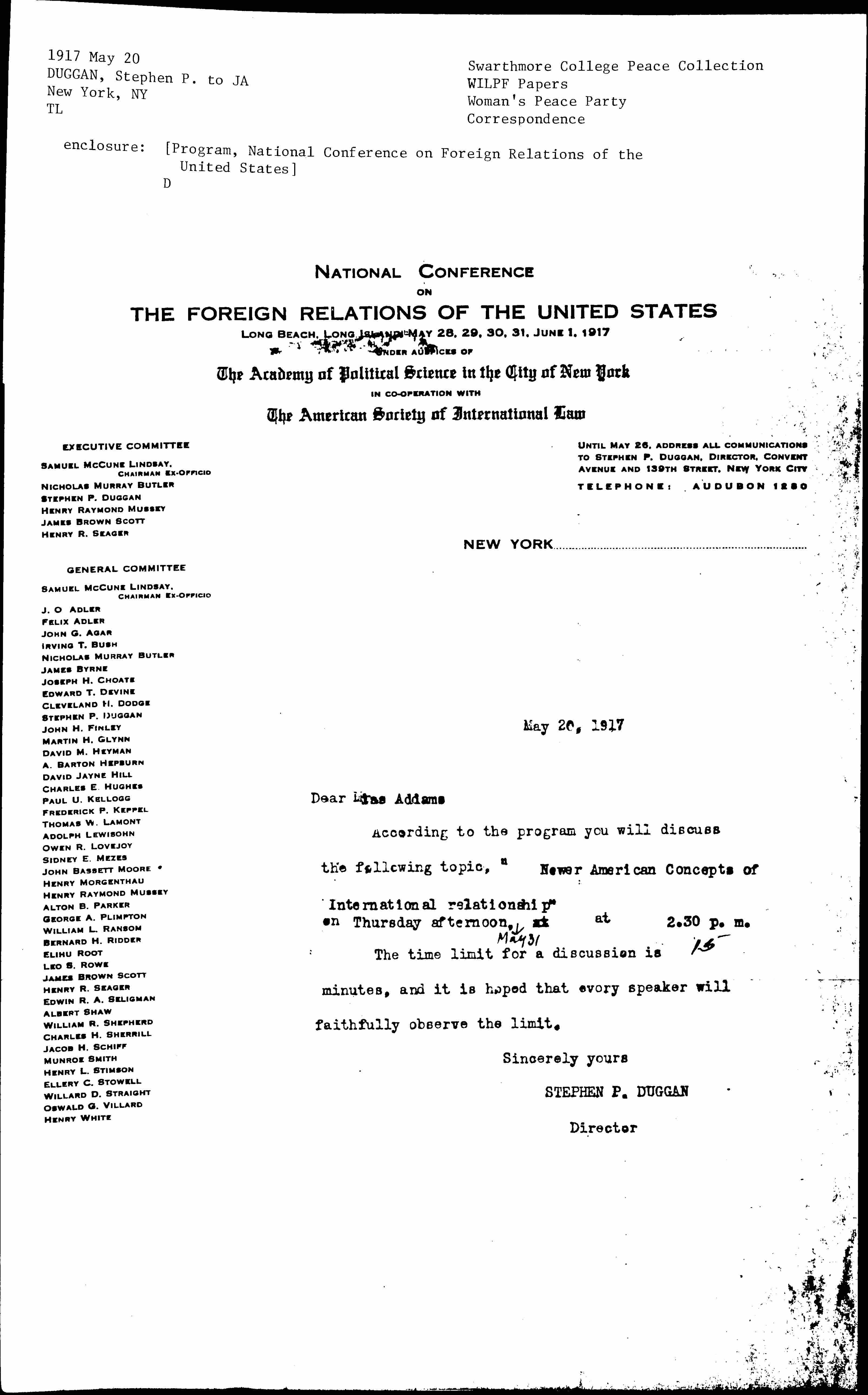 According to the program you will discuss the following topic, "Newer American Concepts of International relationship" on Thursday afternoon, <May 31> at at 2.30 p.m.