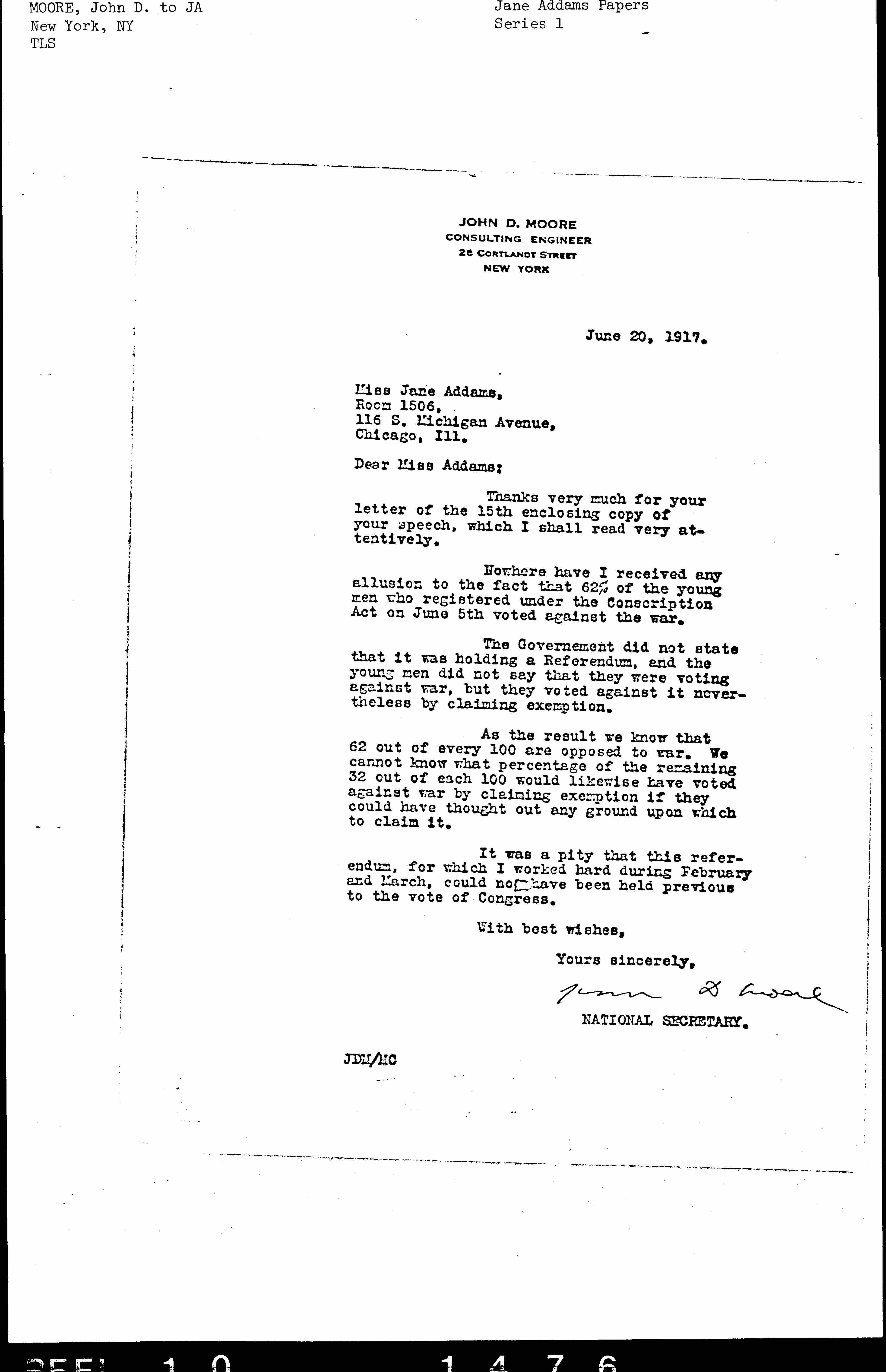 Nowhere have I received any allusion to the fact that 62% of the young men who registered under the Conscription Act on June 5th voted against the war.