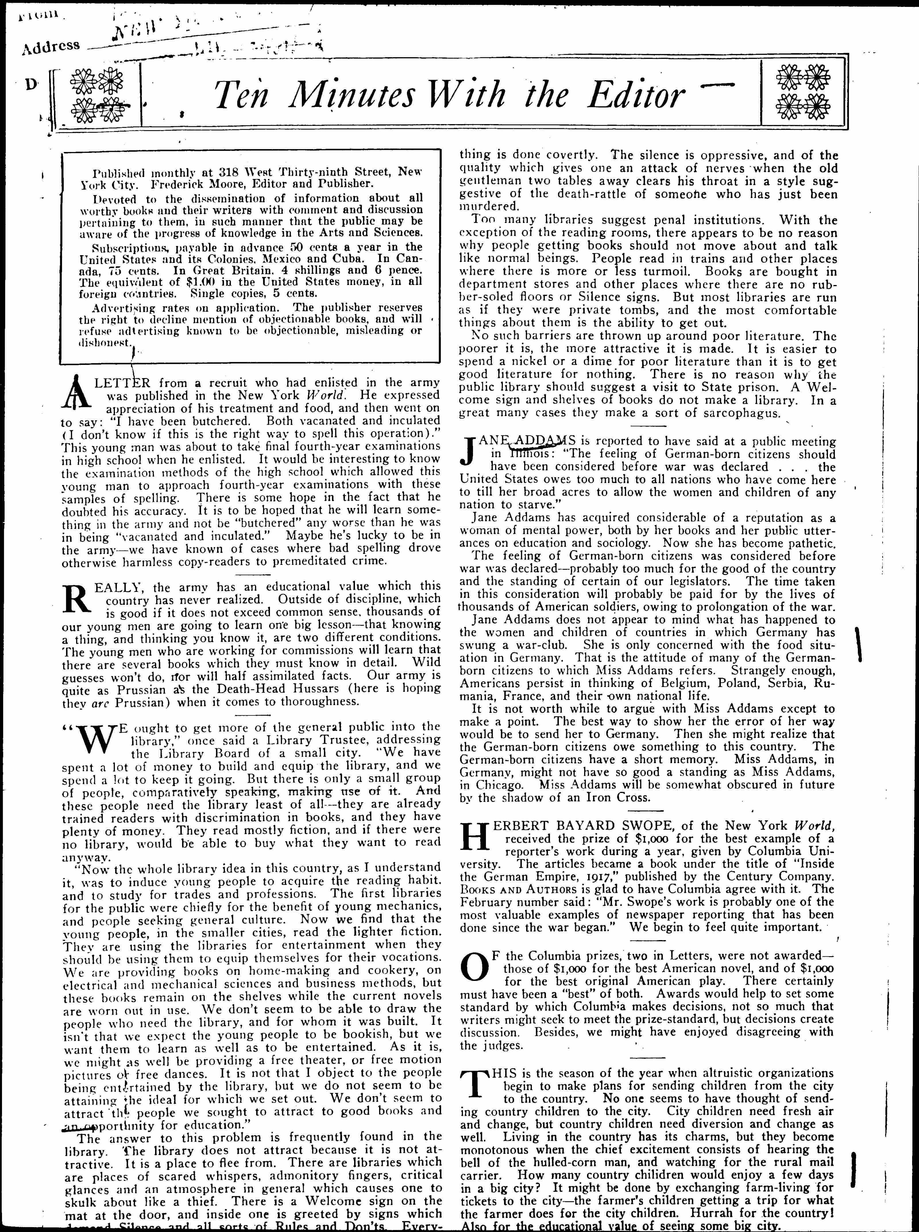 It is not worthwhile to argue with Miss Addams except to make a point. The best way to show her the error of her way would be to send her to Germany. Then she might realize that the German-born citizens have a short memory. Miss Addams, in Germany, might not have so good a standing as Miss Addams, in Chicago. Miss Addams will be somewhat obscured in future by the shadow of an Iron Cross.