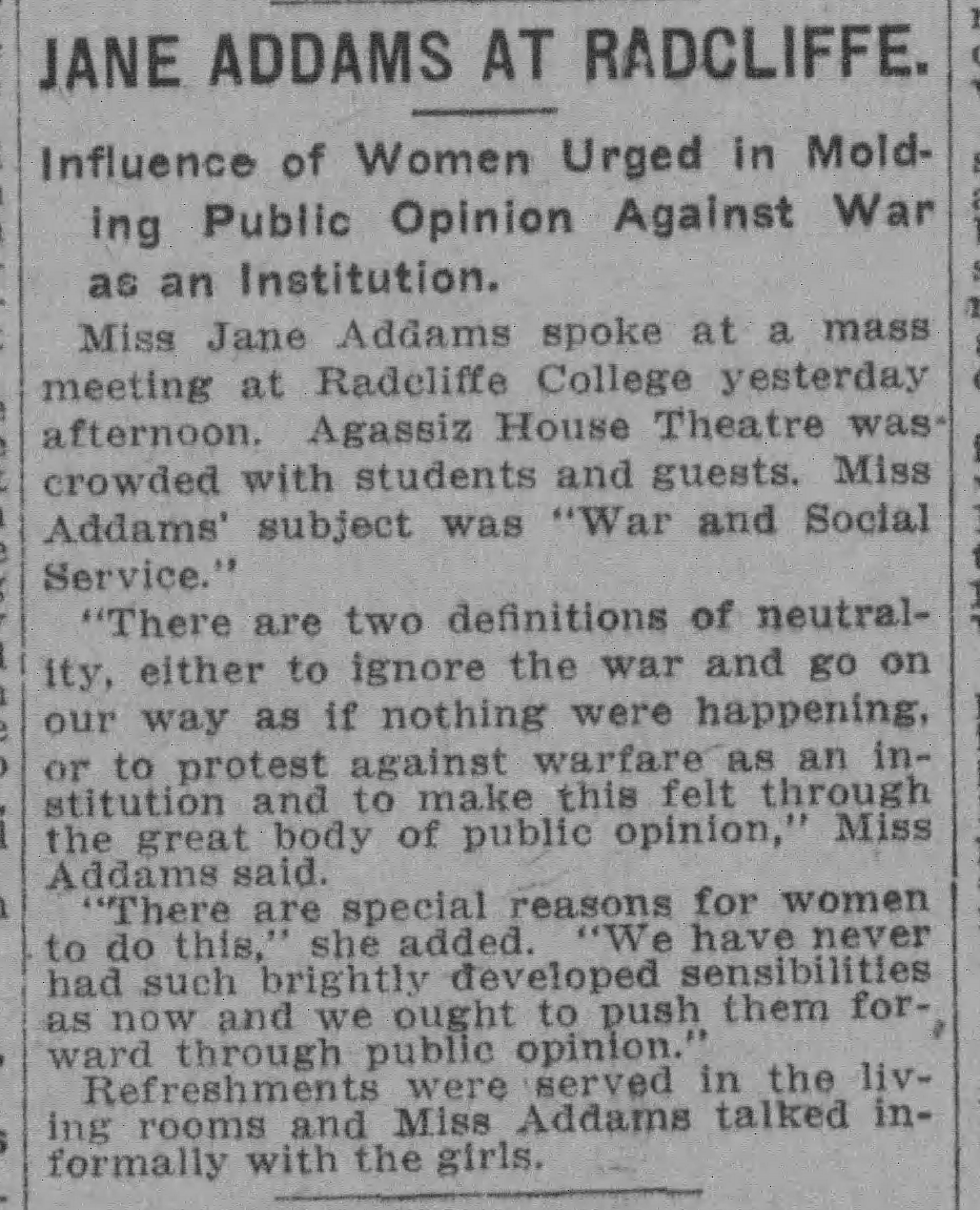 War and Social Service, March 8, 1915 (excerpt)