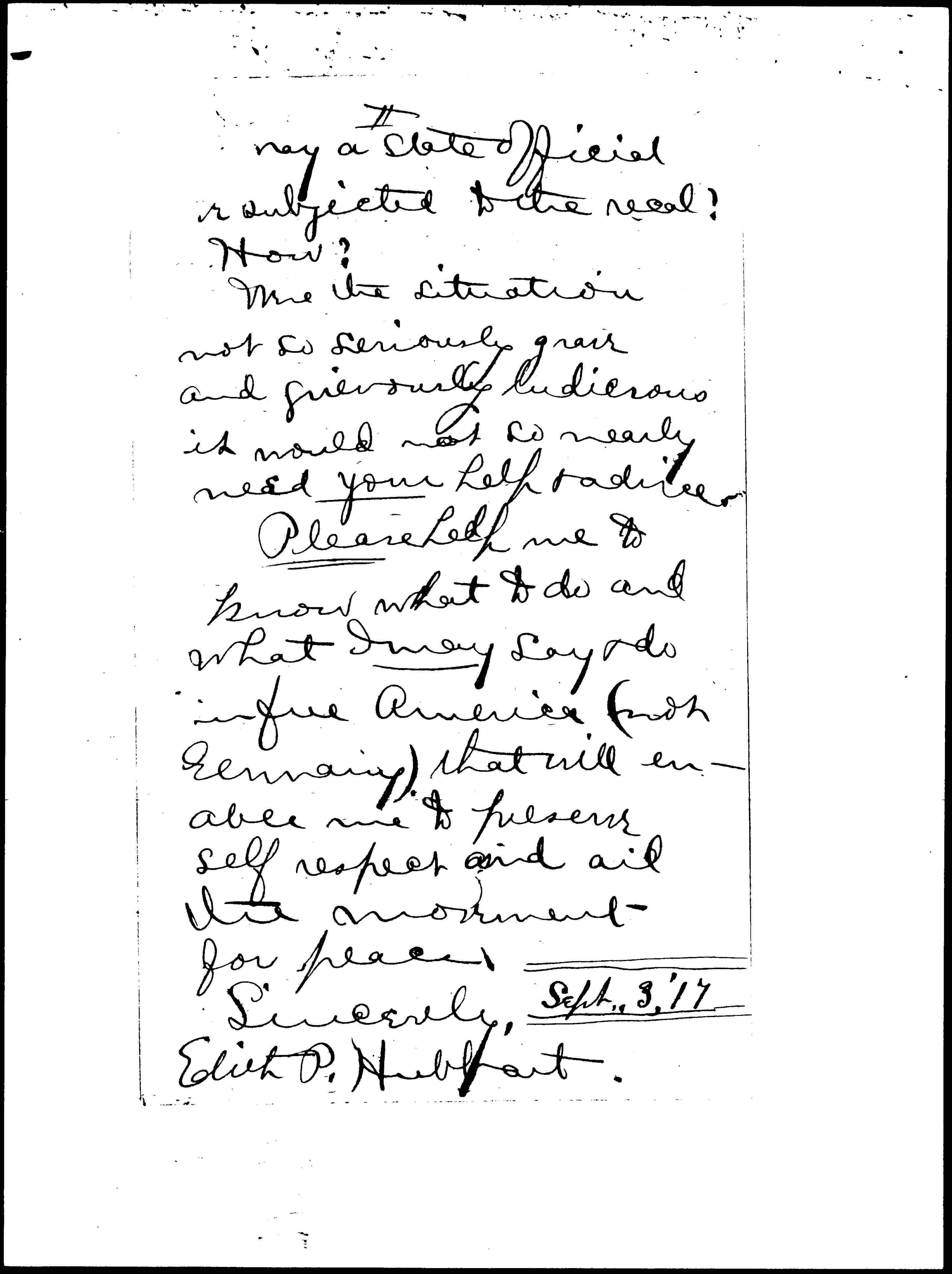 Please help me to know what to do and what I may say & do in free America (not Germany) that will enable me to preserve self respect and aid the movement for peace.