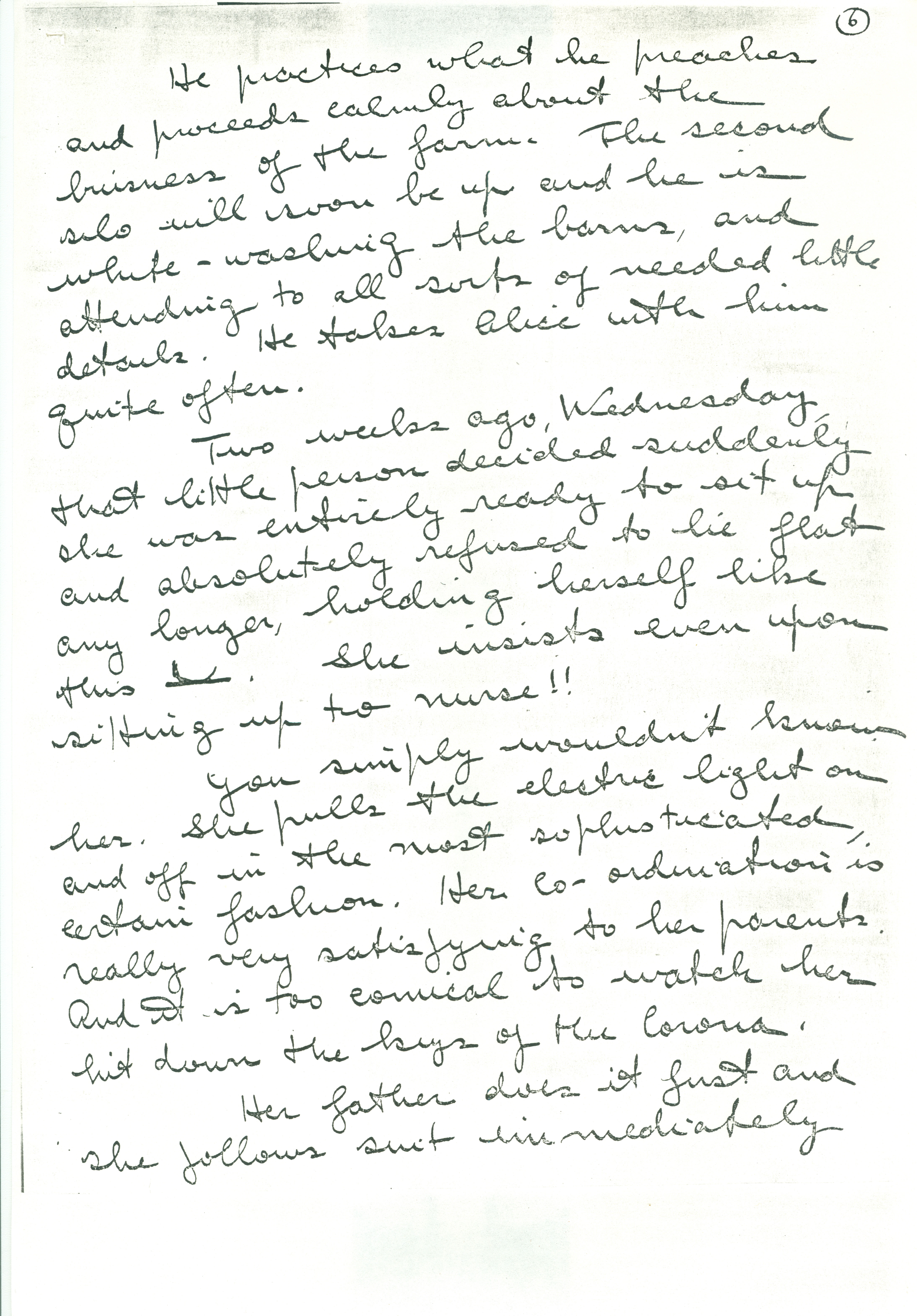 You know she was 3 months old the 26th. I do not want her to [develop] too rapidly. I can't abide precocious children. But I think, as a matter of fact, she is [page 6] just an unusually healthy and thoroughly normal youngster.
