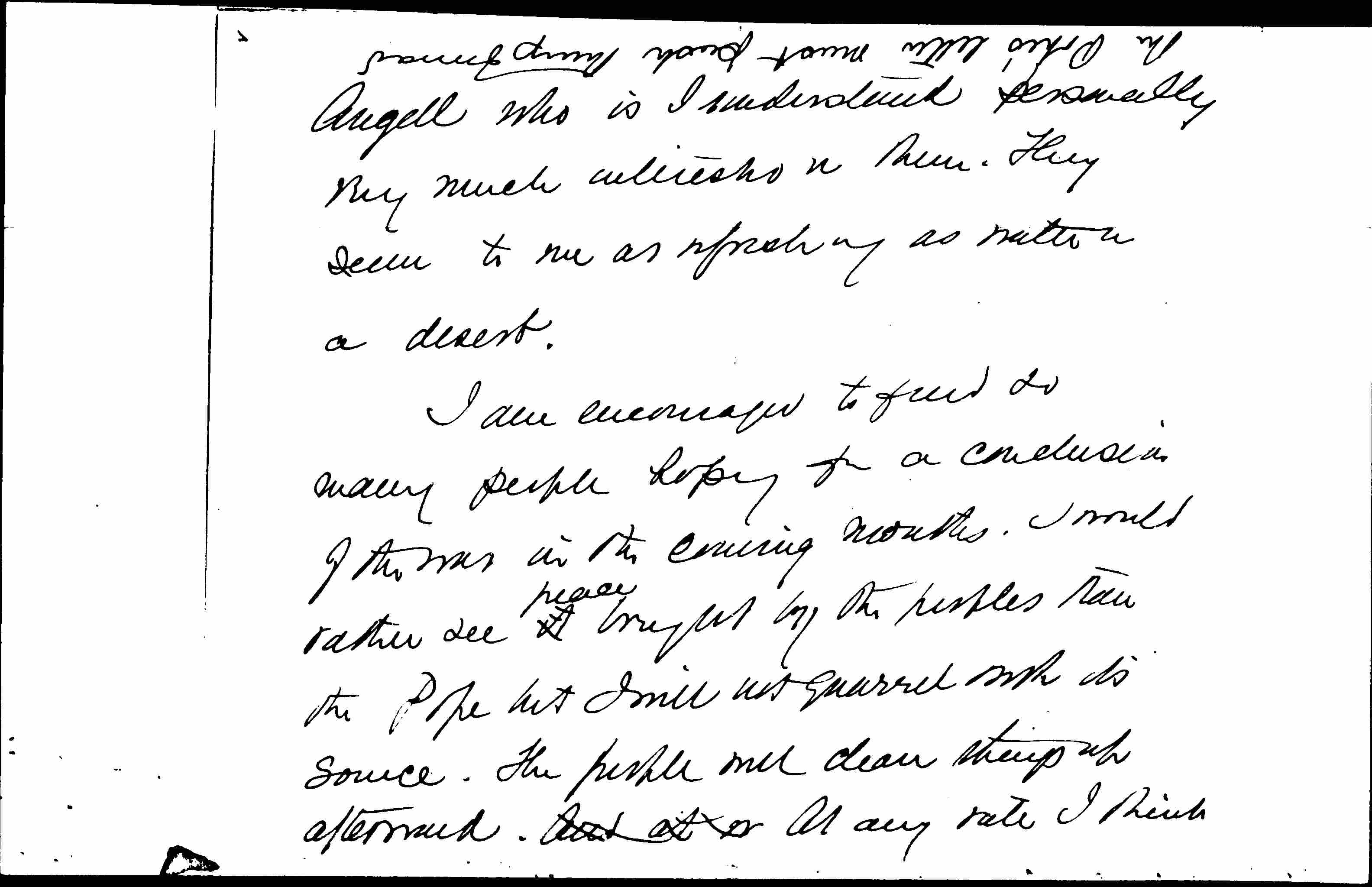 I am encouraged to find so many people hoping for a conclusion of the war in the coming months. I would rather see it <peace> brought by the peoples than the Pope but I will not quarrel with its source. The people will clean things up afterward. And at w At any rate I think [continued upside in top margin] the Pope's letter must push things forward [continued in left margin on first page] a step. It is already having a clarifying effect.