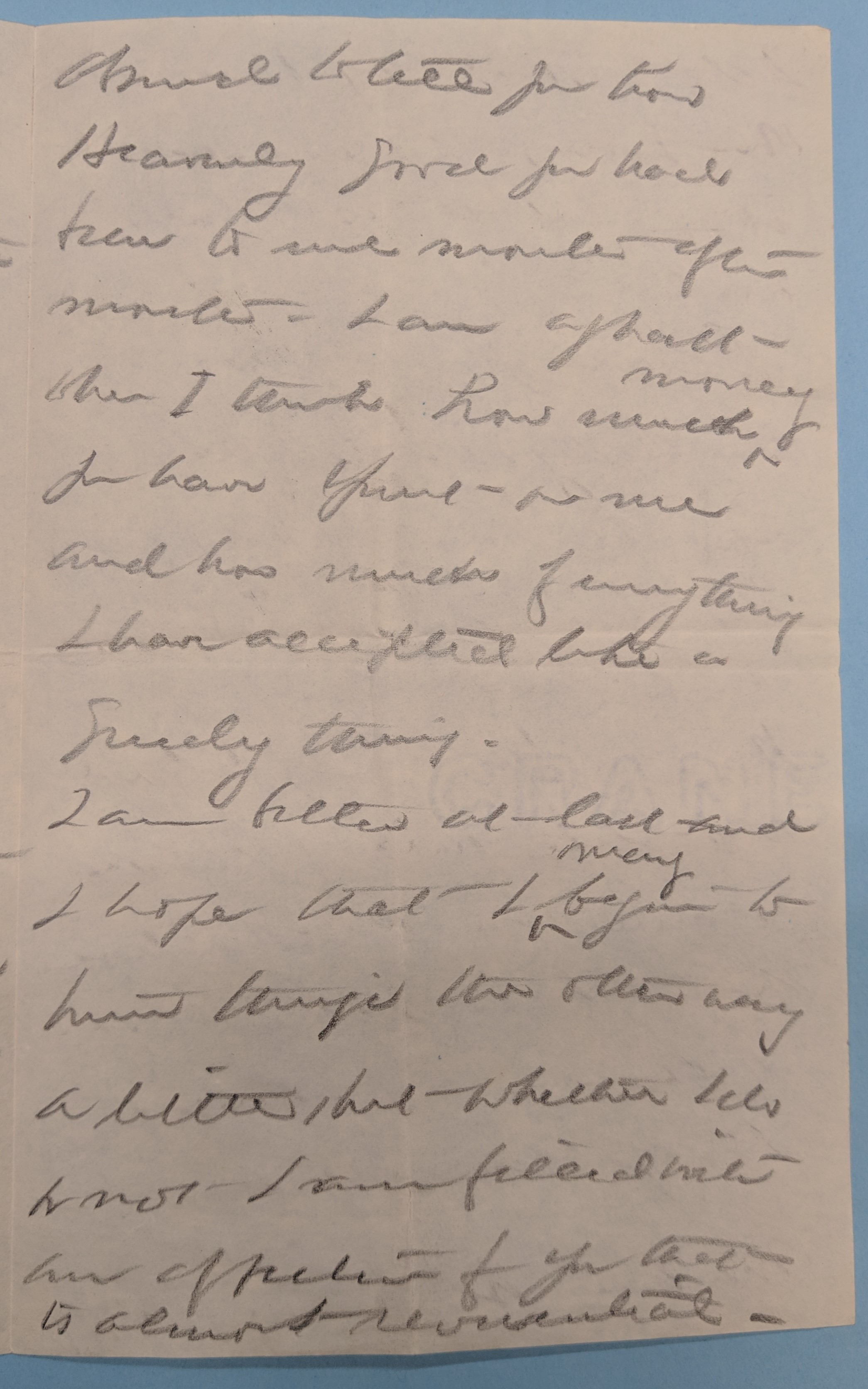 I was more or less tongue tied the day I left. It seemed [page 3] absurd to tell you how Heavenly good you had been to me month after month. I am aghast when I think how much <money> you have spent on me and how much of everything I have accepted like a greedy thing.