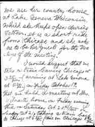 She kindly suggests that [page 2] we use her country house at Lake Geneva Wisconsin, which she keeps open during October. It is a short ride from Chicago and she asks us to be her guests for the two days of the meeting.