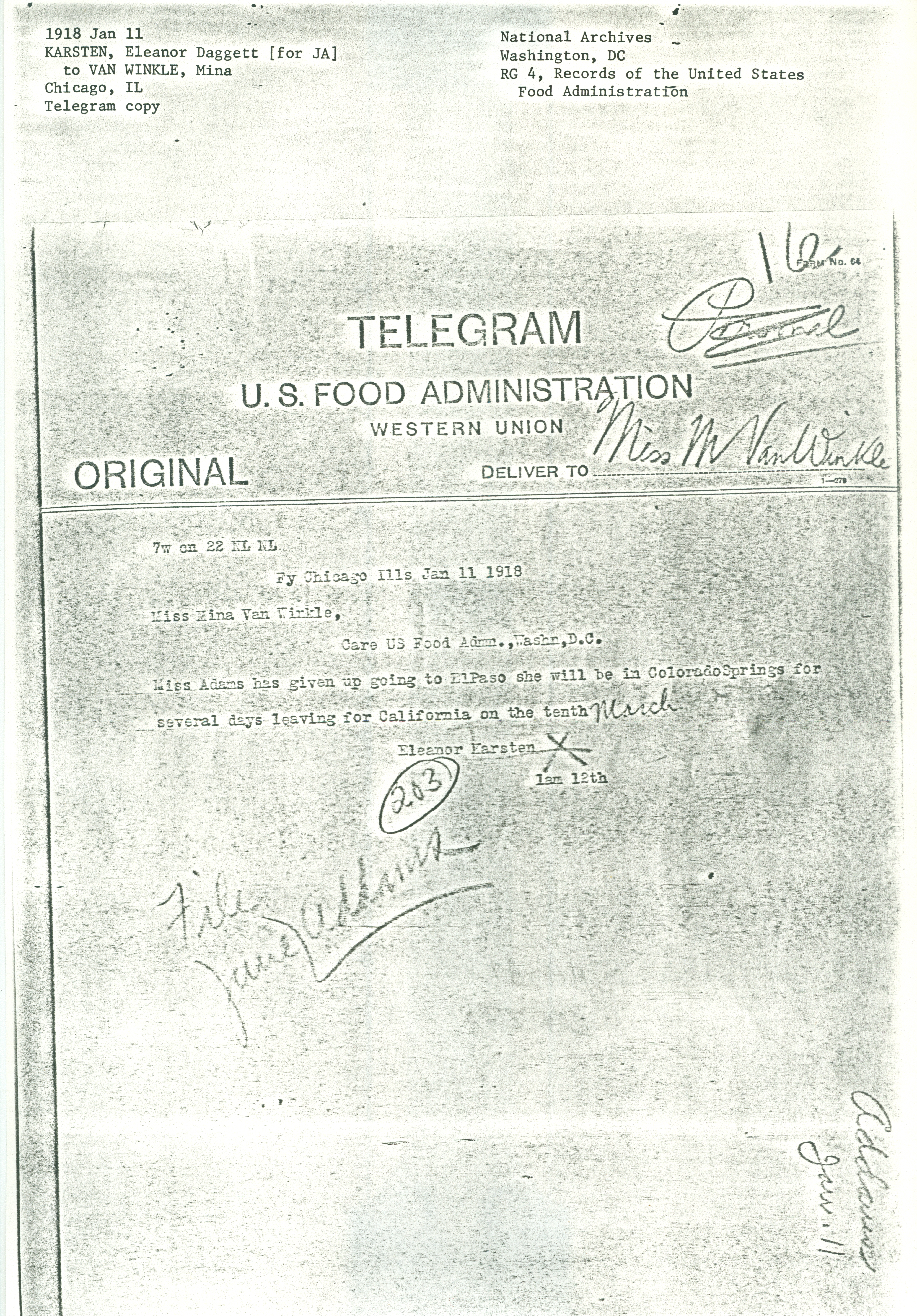Miss [Addams] has given up going to El Paso she will be in Colorado Springs for several days leaving for California on the tenth ↑March↓