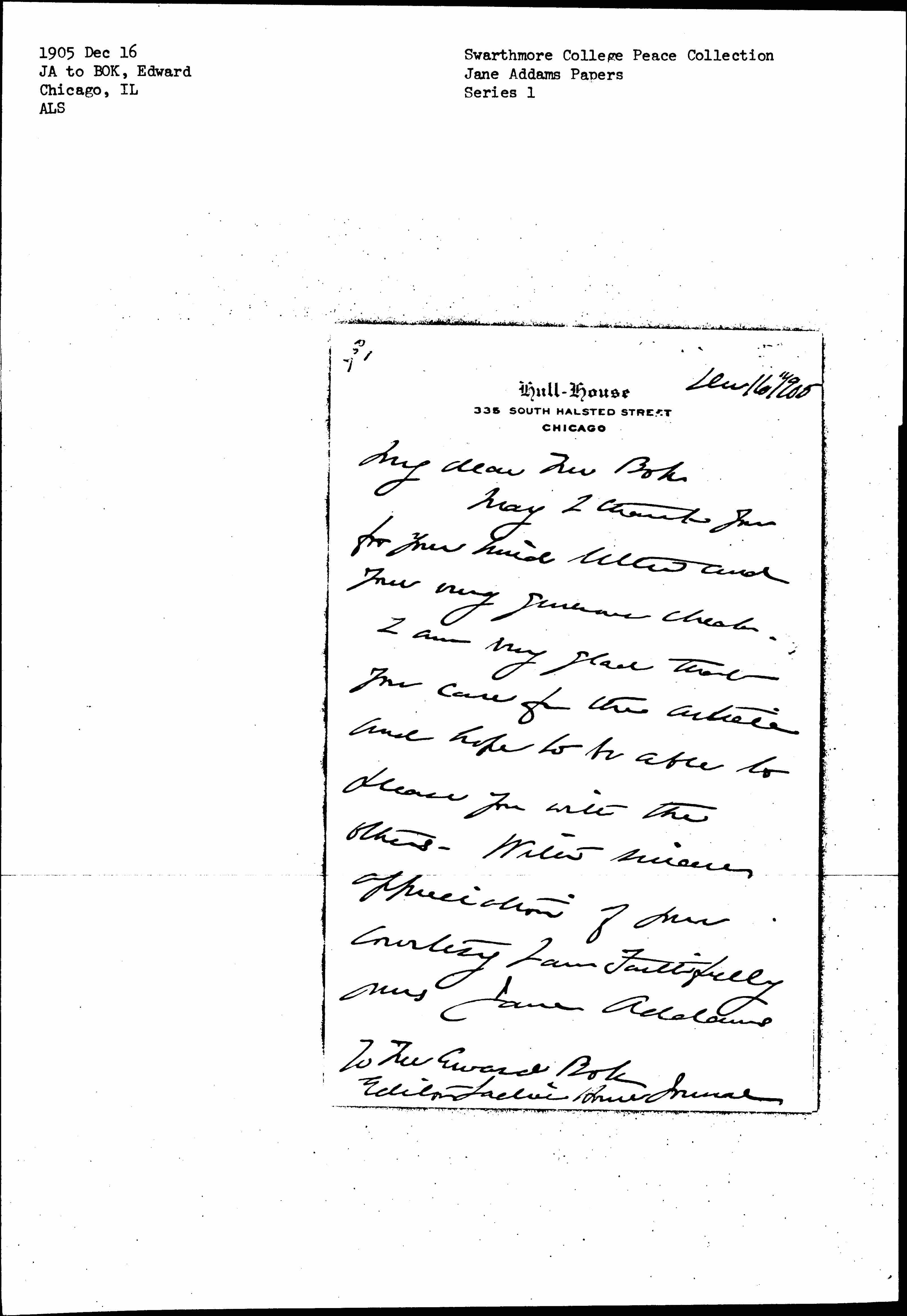 To Mr [Edward] Bok