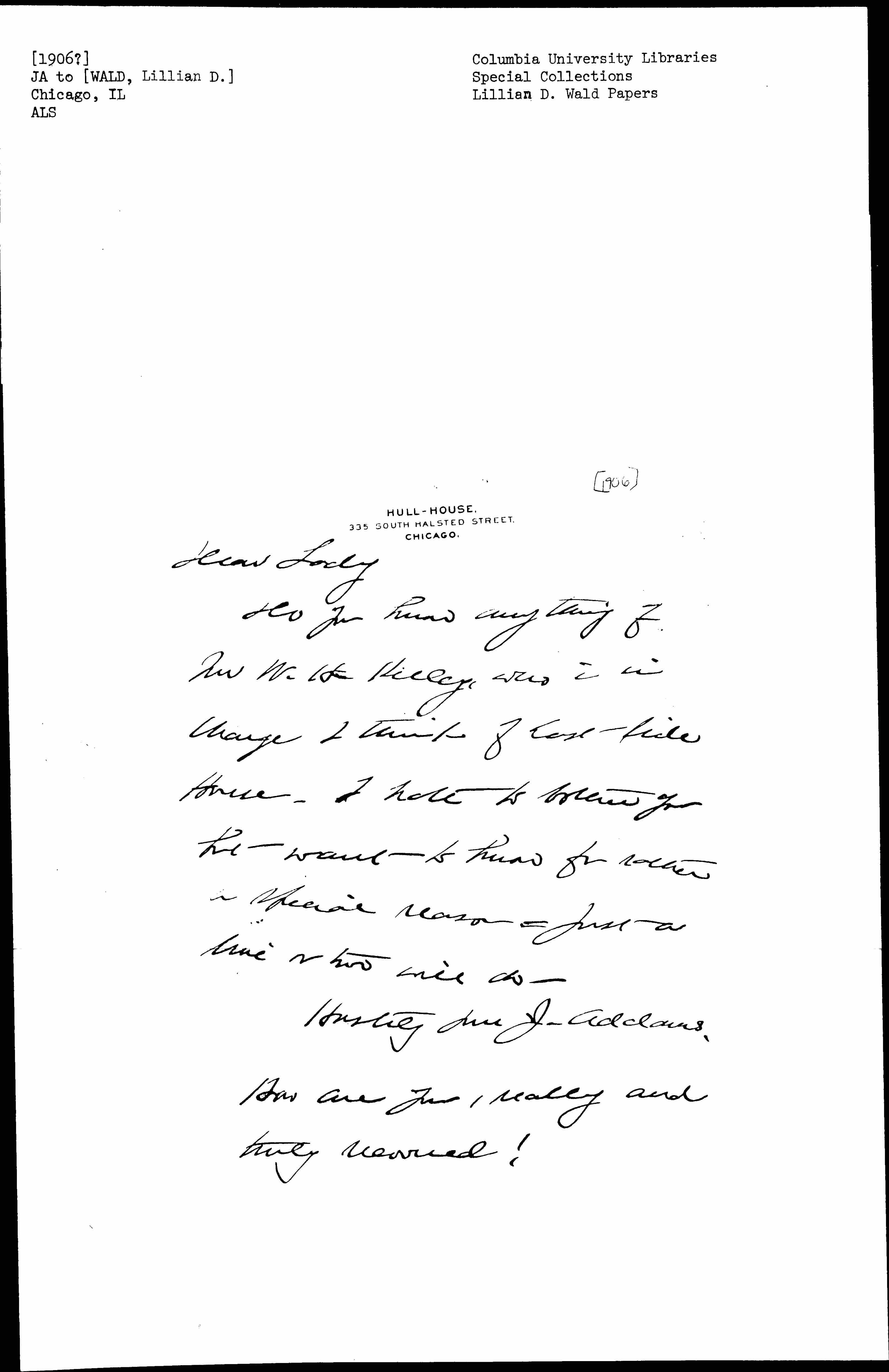 Do you know anything of Mr W. H. Kelley, who is in charge I think of East Side House. I hate to bother you but want to know for rather a special reason. Just a line or two will do.