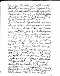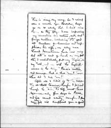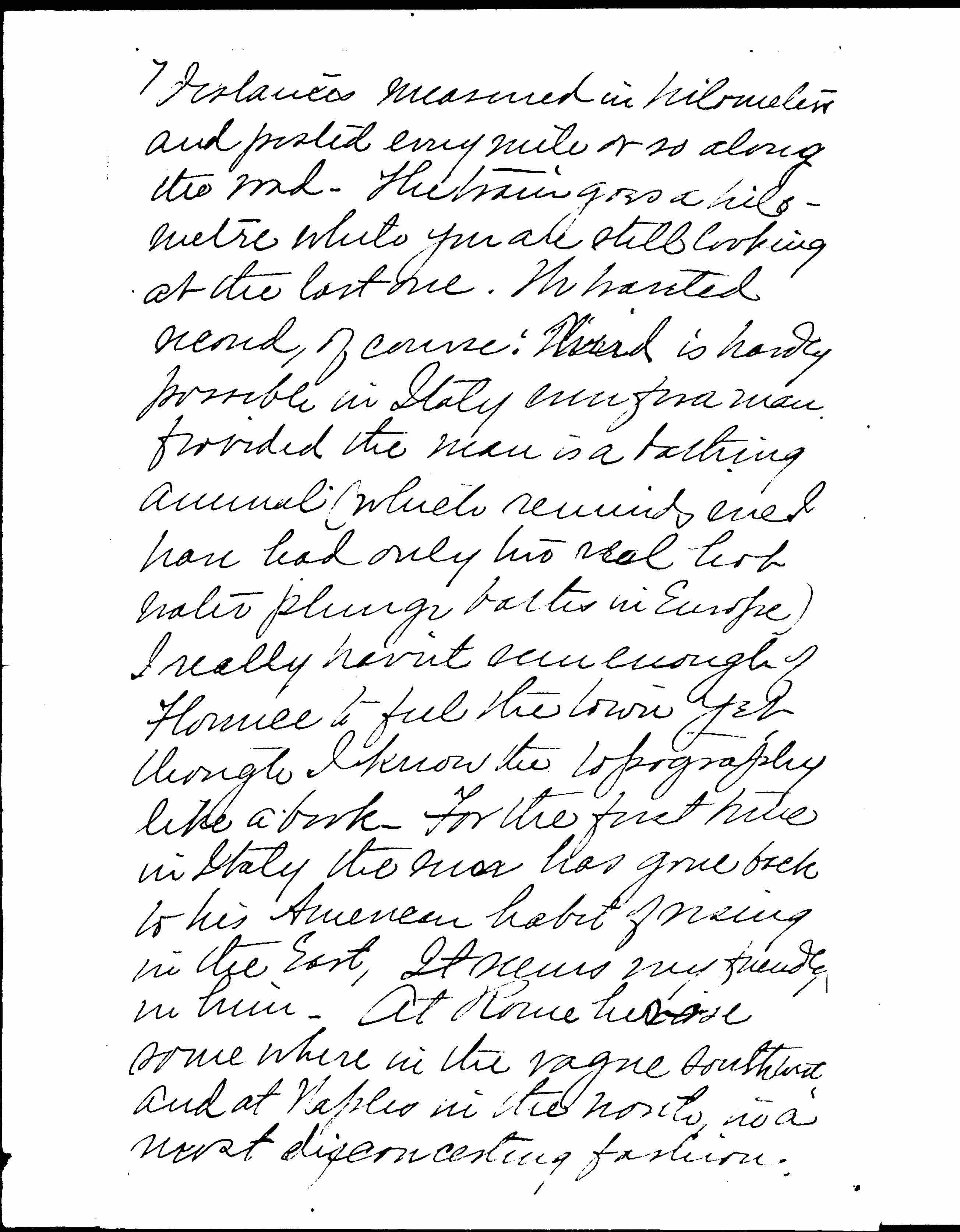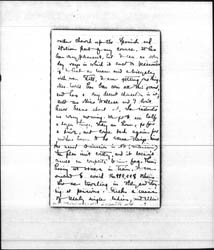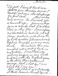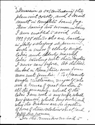 Did I write you from Rome? I forget. I haven't heard one syllable from America since I sailed—not even the whisperings of a post-card. [page 2] This is wrong, very wrong; cos I sailed over a month ago. However, days go on so evenly that I don't miss them, as they fly. I am improving my education in nature, art, and foreign customs, including the good old custom of Ananias and Sapphira his wife, as every man should. Sensations have now mingled into a sort of hash on my palate; I meditatively put my tongue in my tooth, and say with the Englishwoman in the story, "There's mutton, and sausage. But is that 'am? now where did I 'ave 'am?"