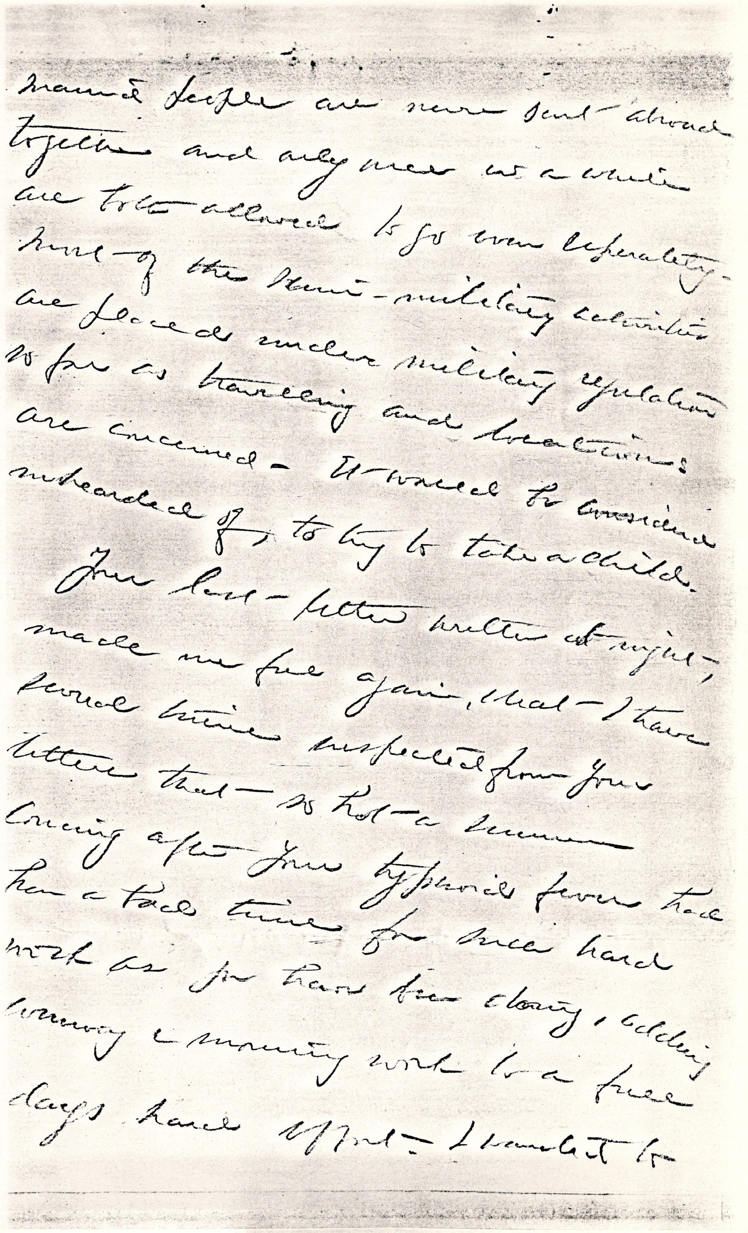 I have been trying to get places for several people and various difficulties are always encountered. [page 3] Married people are never sent abroad together and only once in a while are both allowed to go even separately. Most of the [semi]-military activities are placed under military regulation so far as [traveling] and locations are concerned. It would be considered [unheard] of, to try to take a child.