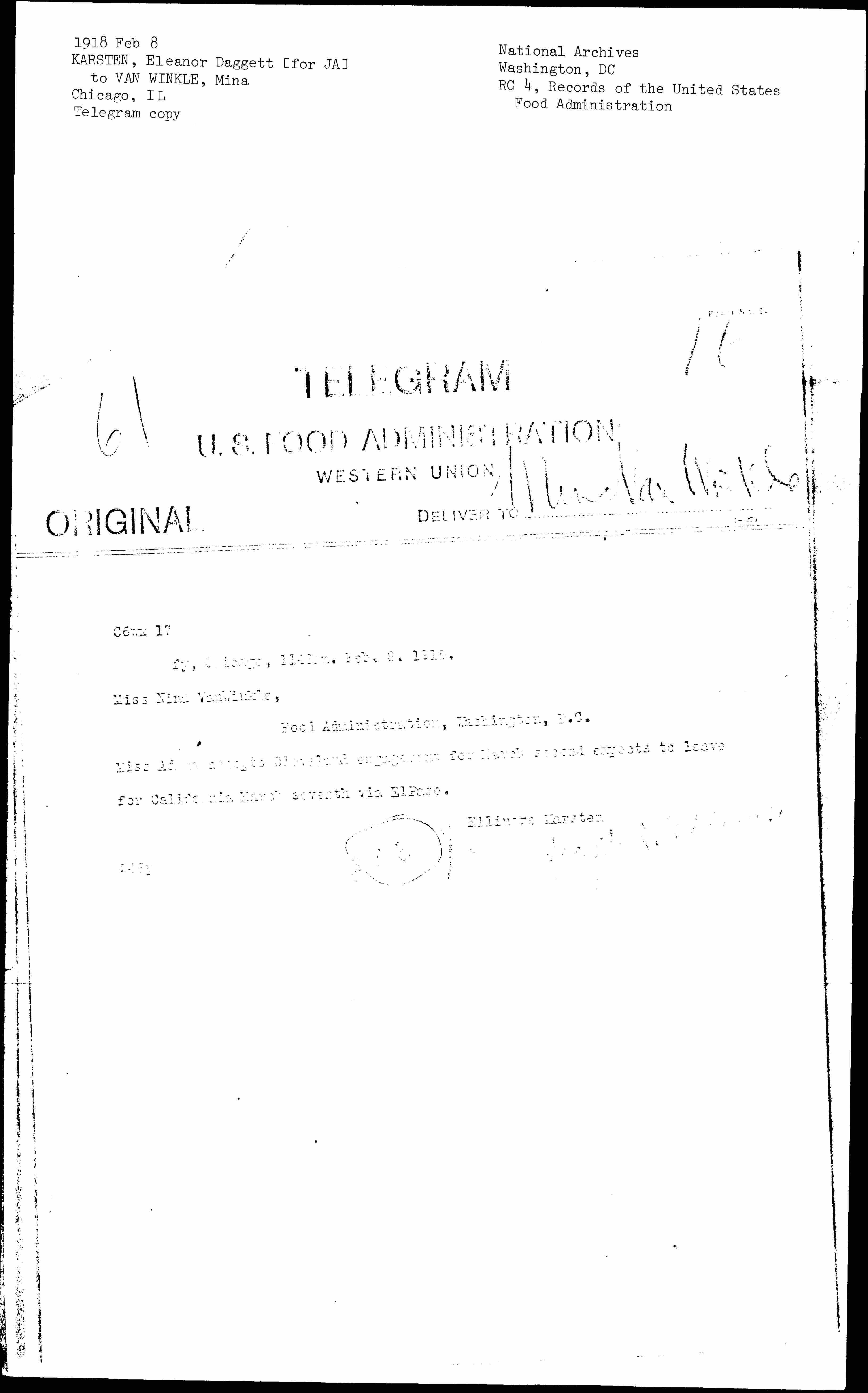 Miss Addams [accepts] Cleveland engagement for March second expects to leave California March seventh via El Paso.
