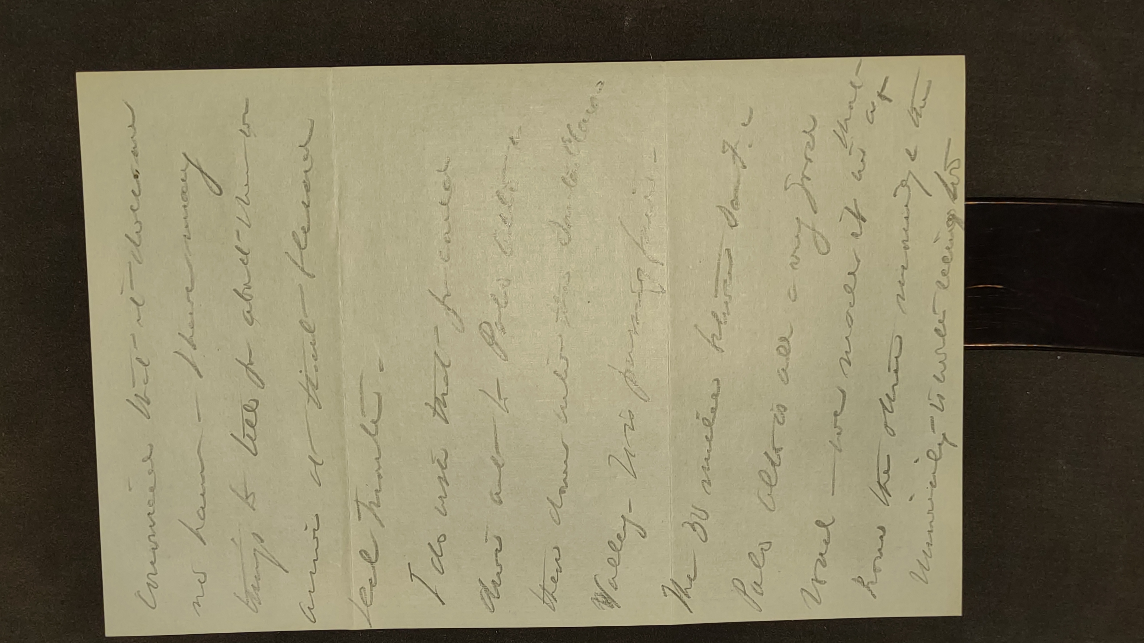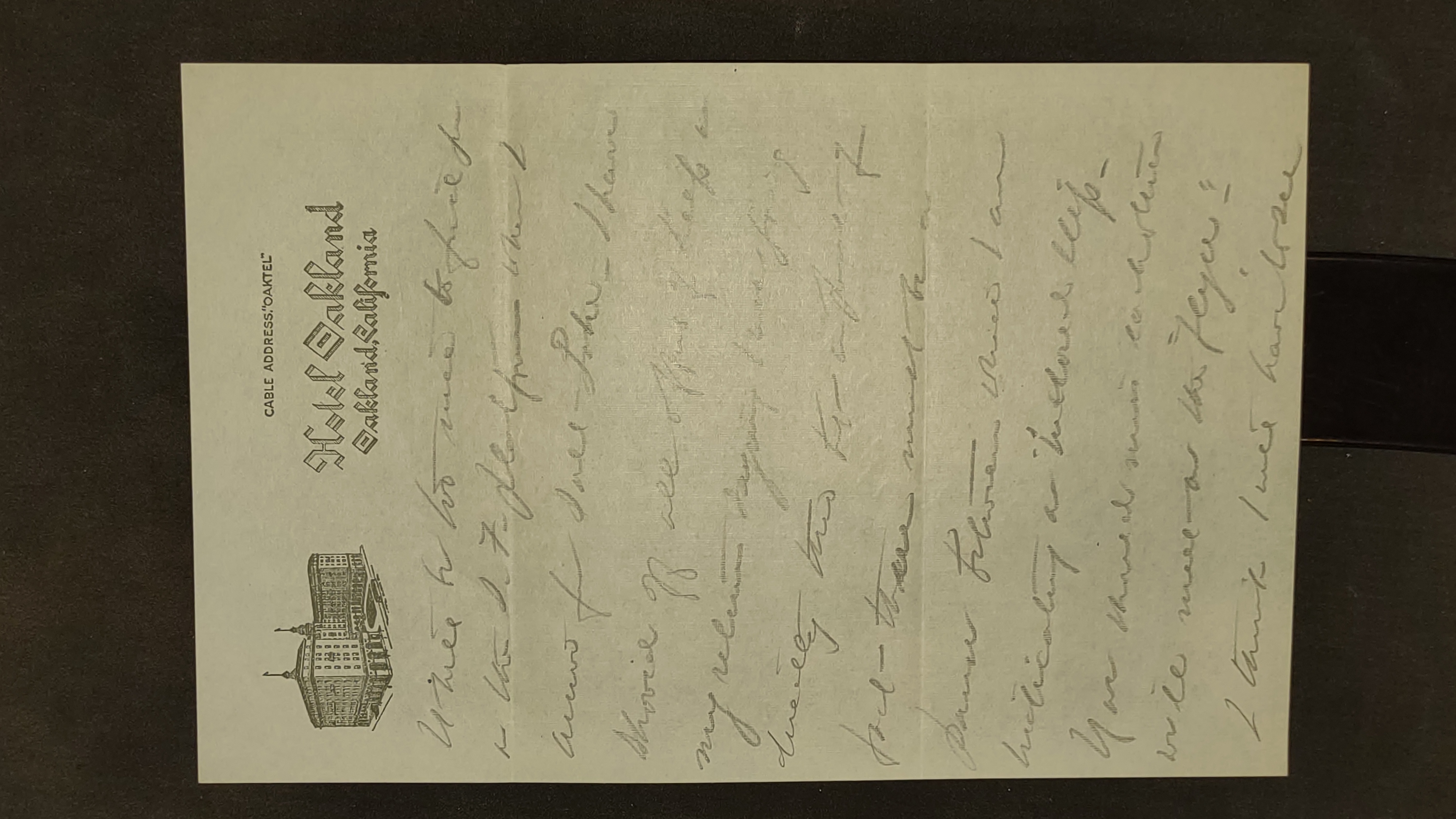 I do wish that you could drive out to Palo Alto & then down into the Santa Clara Valley -- It is passing fair -- The 30 miles between San F. & Palo Alto is all a very good road -- we made it in a ↑short↓ hour the other morning & the University is worth seeing too. [page 3] It will be too nice to find you on the S.F. platform when I arrive from Salt Lake. I have shooed off all offers of help on my return saying I was going directly [through] but in point of fact there must be a pause between which I am indicating as [enclosed] clip. If we should miss each other we'll meet at the "flyer."