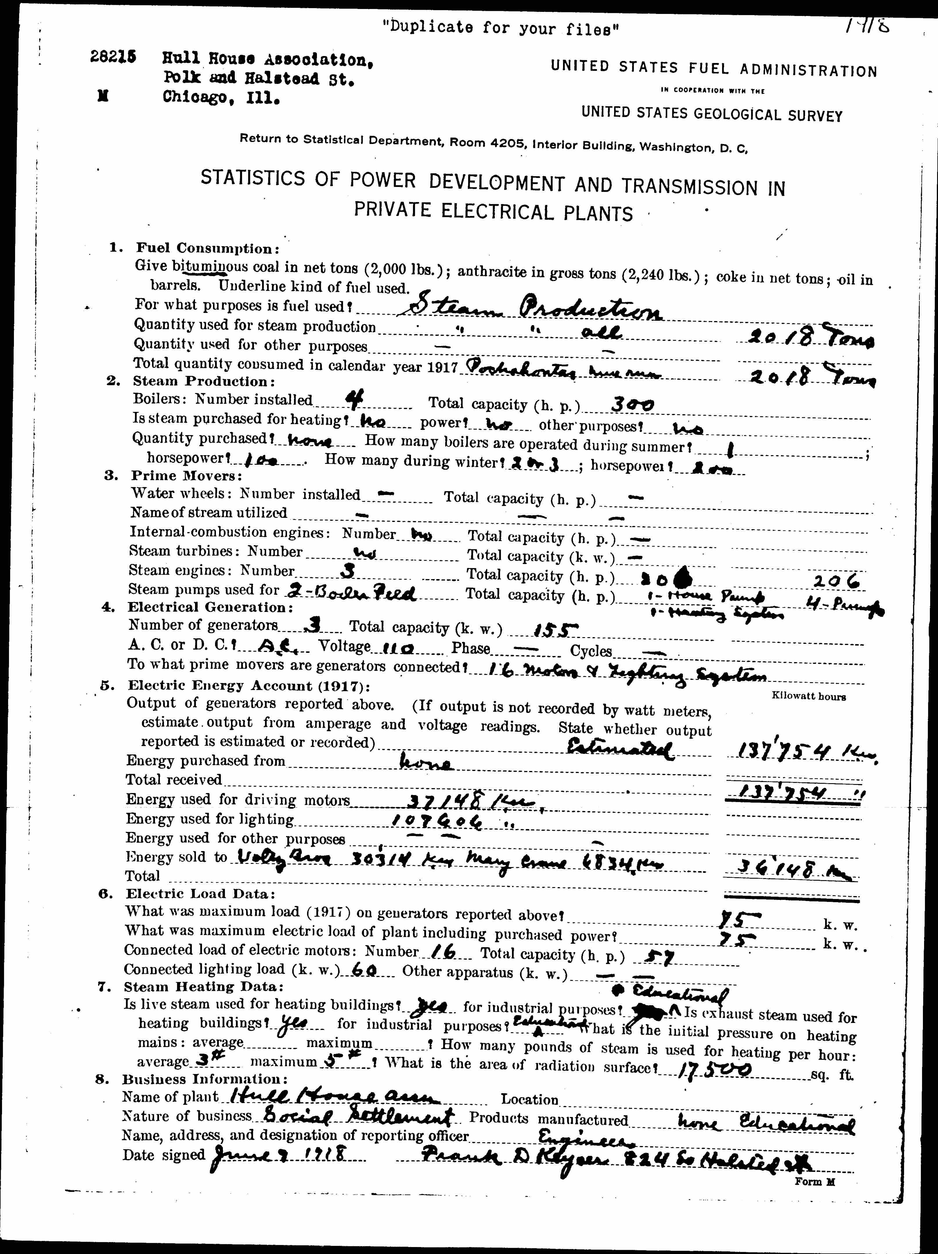 Date signed ↑June 7 1918 Frank D Keyser 824 So Halsted St.↓