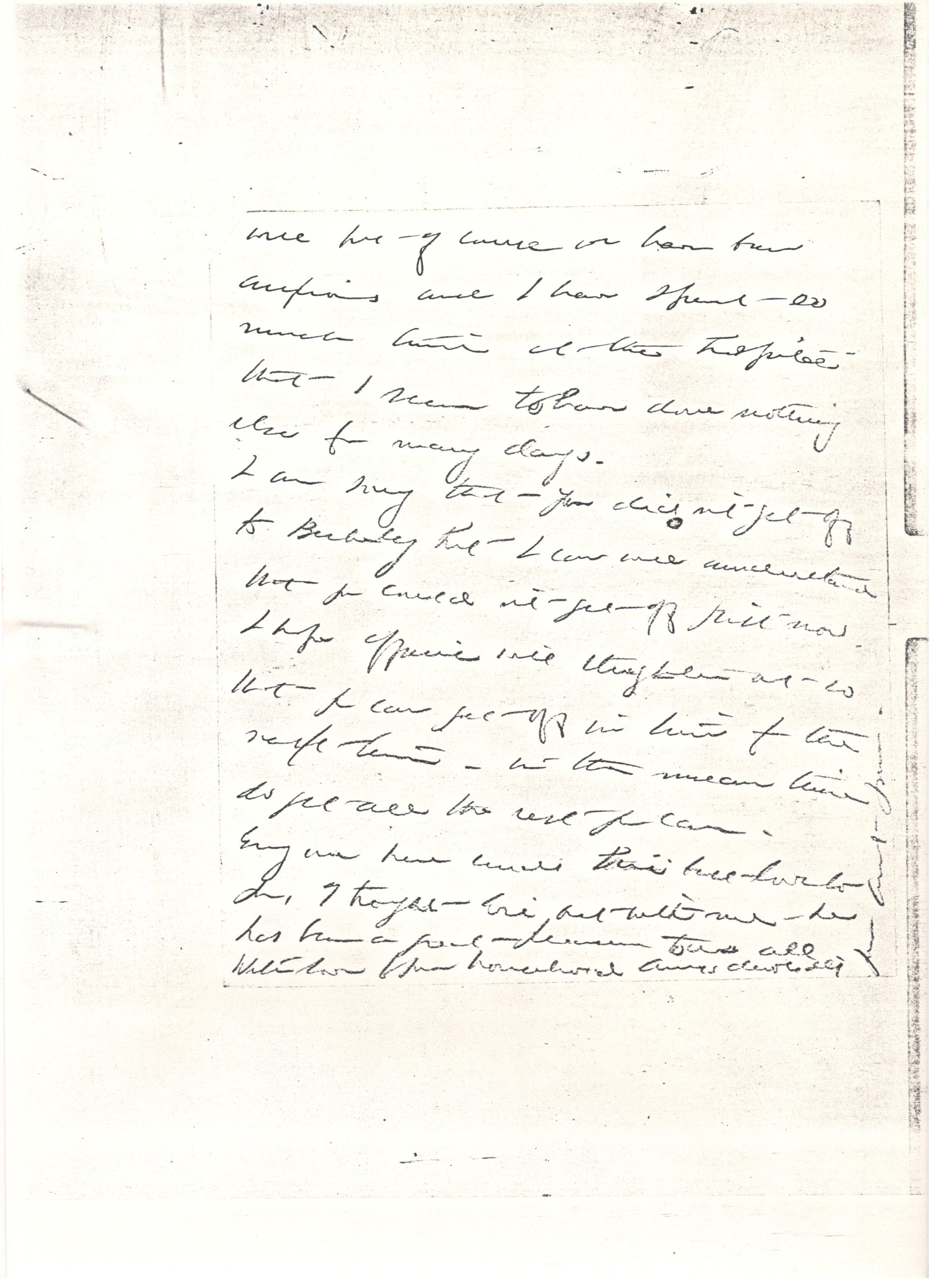 I am sorry that you didn't get off to Berkeley but I can well understand that you couldn't get off just now. I hope affairs will straighten out so that you can get off in time for the next term -- in the mean time do get all the rest you can.