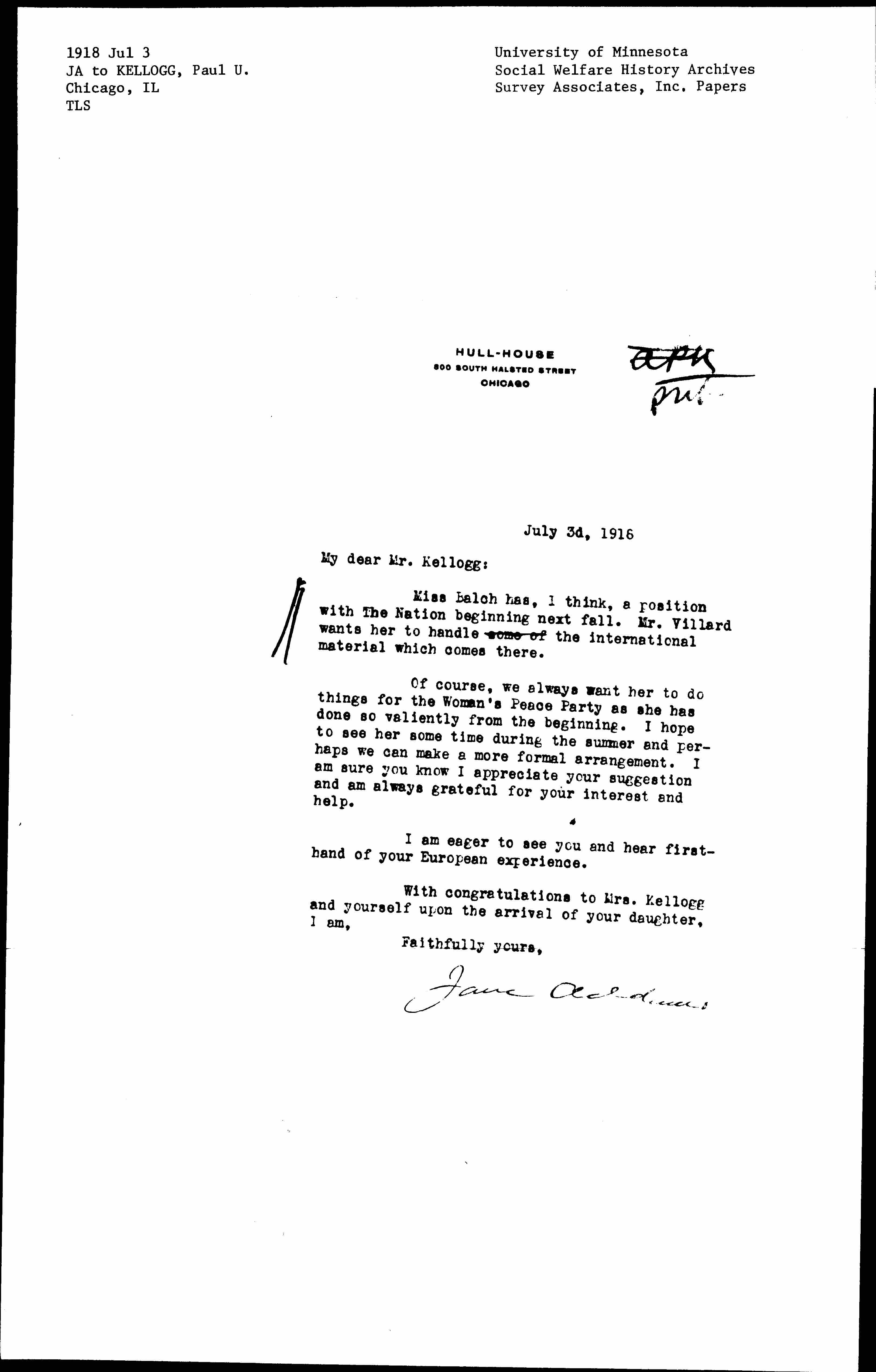 Jane Addams [signed]