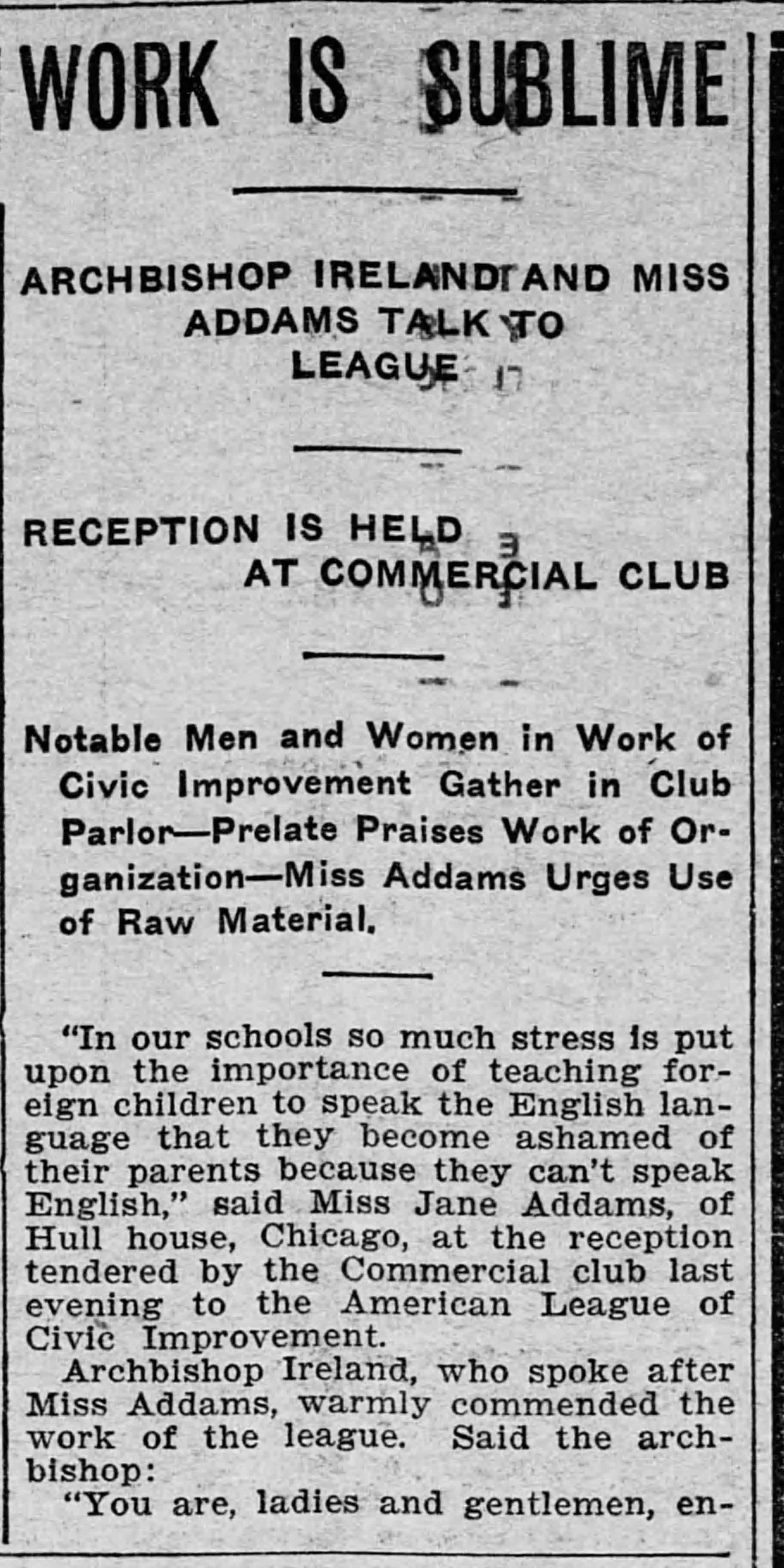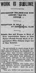ARCHBISHOP IRELAND AND MISS ADDAMS TALK TO LEAGUE