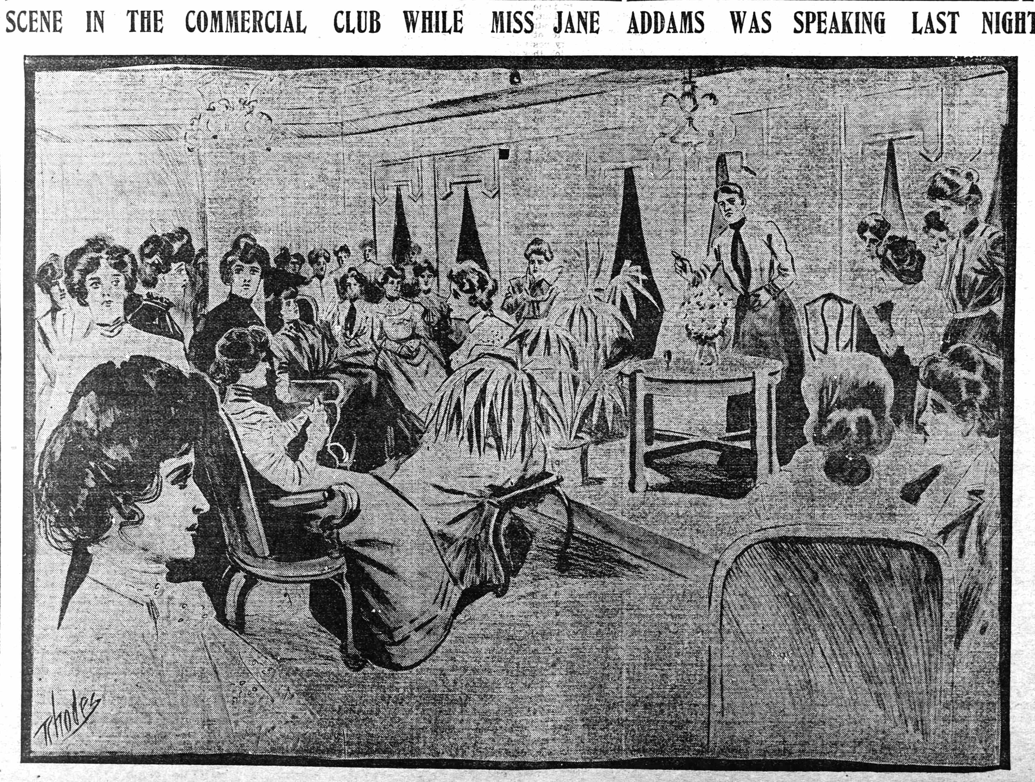 [image] SCENE IN THE COMMERCIAL CLUB WHILE MISS JANE ADDAMS WAS SPEAKING LAST NIGHT