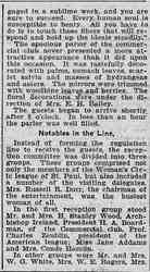 The spacious parlor of the commercial club never presented a more attractive appearance than it did upon this occasion. It was tastefully decorated with palms, sumach leaves, scarlet salvia and masses of hydrangeas and asters. The mirrors were trimmed with woodbine leaves and berries. The floral decorations were under the direction of Mrs. E. H. Bailey.