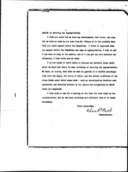 In the meantime, you had best continue at work on the other lines you have started in order to secure as much favor for the item as you can. Since you were here the President has expressed to me his earnest desire to help in the matter, and I am sure that he will do anything he can to [page 2] assist in securing the appropriation.