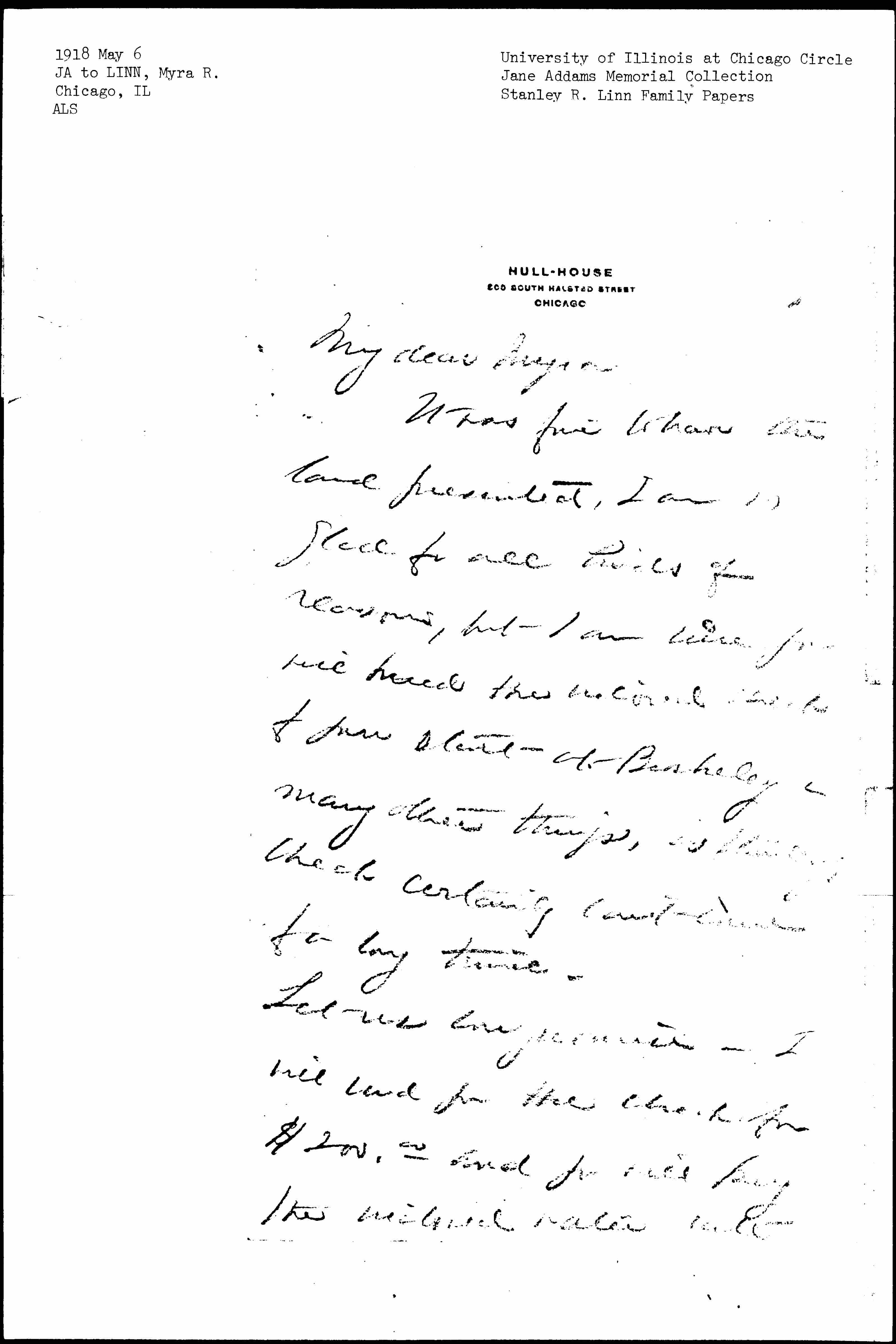 It was fine to have the land presented, I am [so] glad for all kinds of reasons, but I am sure you will need the [enclosed] check for your start at Berkeley & many other things, [as Stanley's] check certainly can't [come] for a long time.