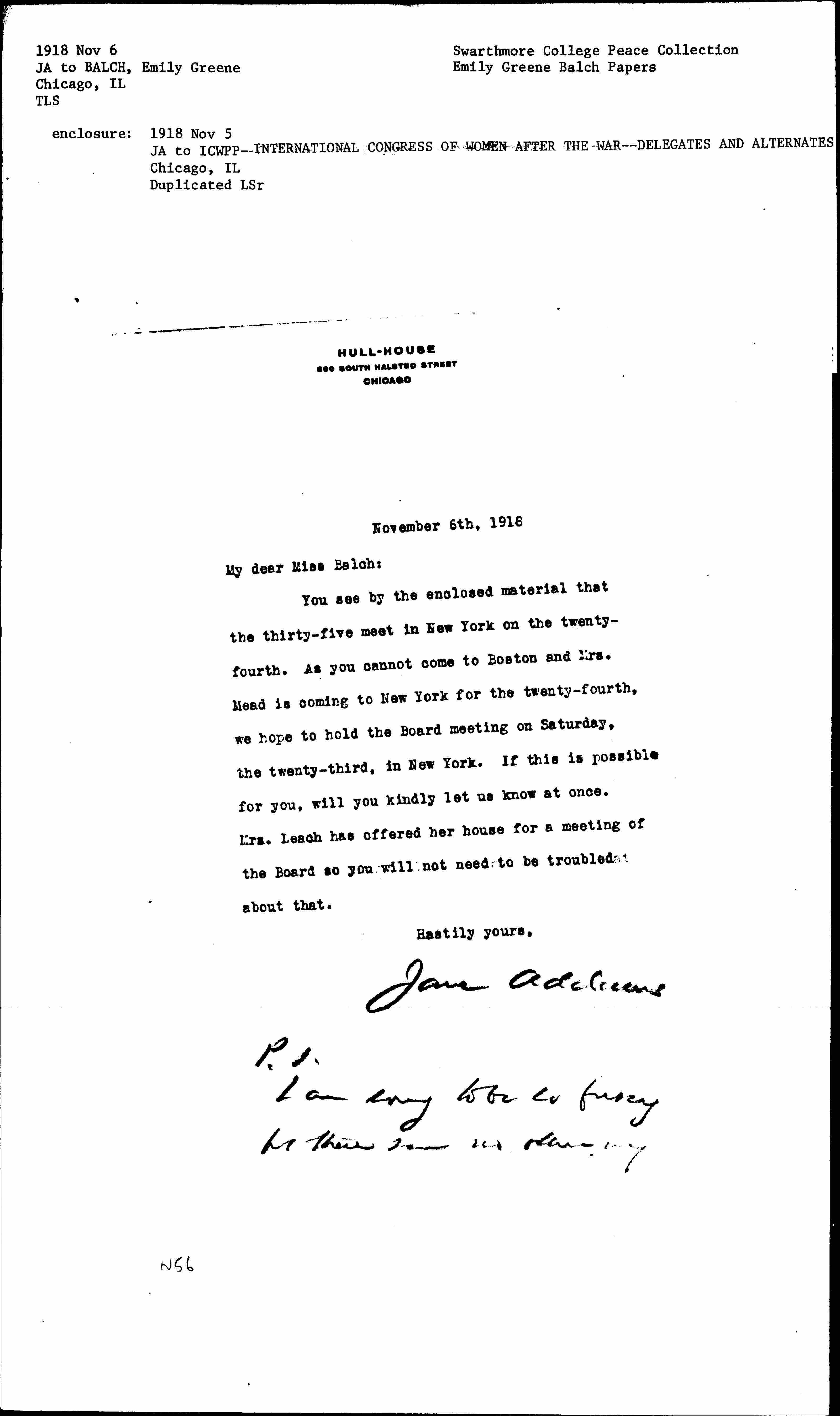 Jane Addams [signed]