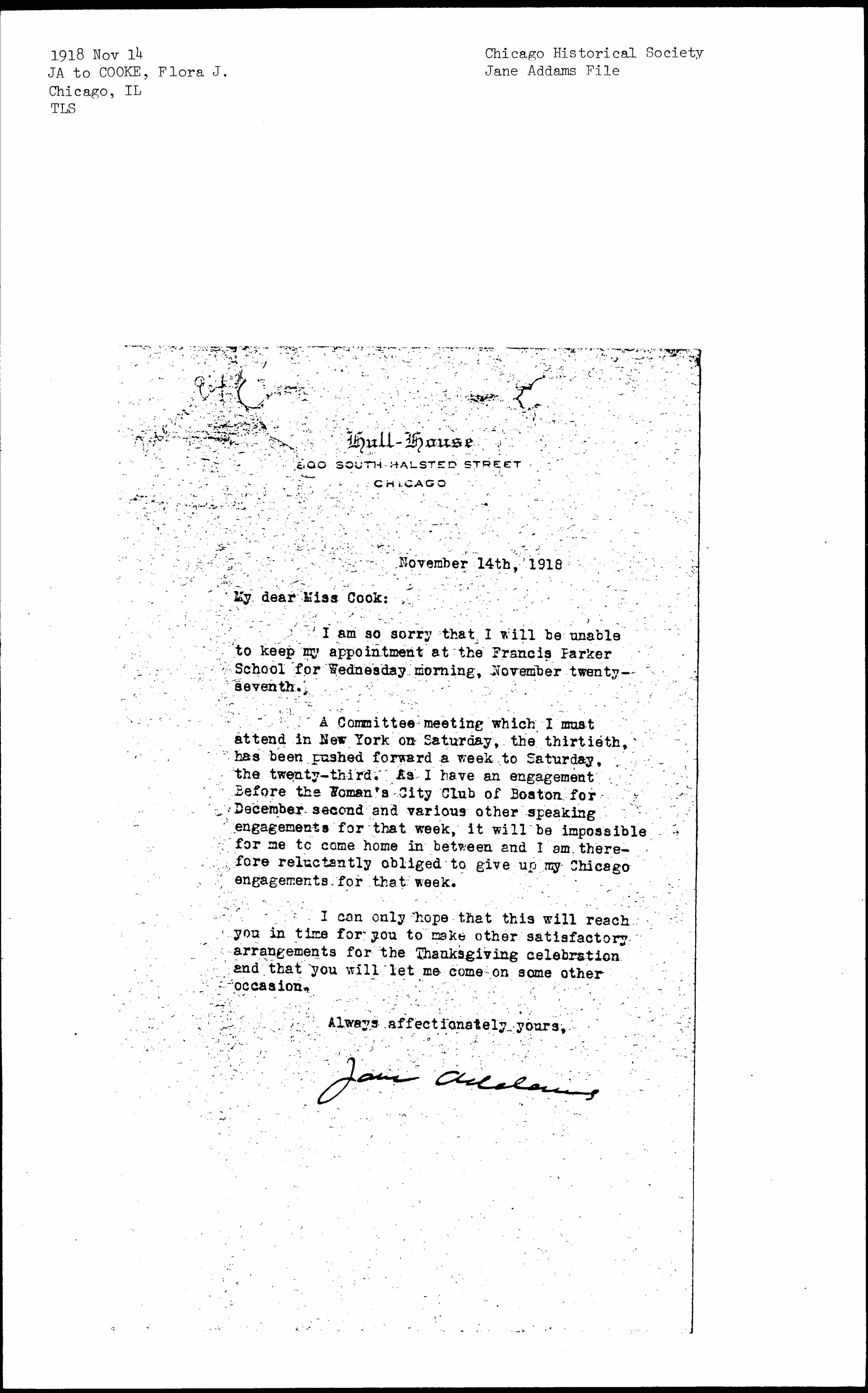 Jane Addams [signed]