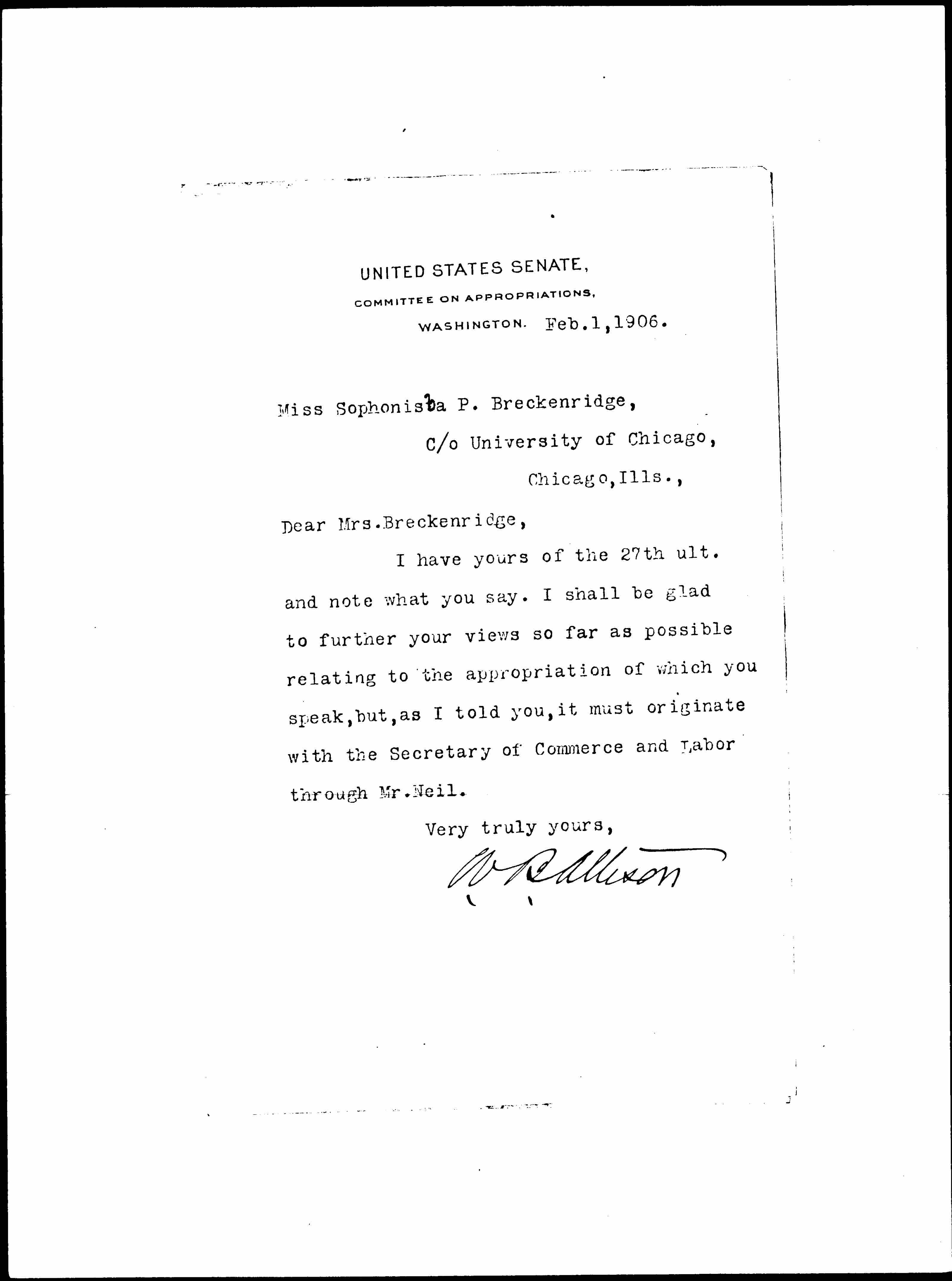 I have yours of the 27th ult. and note what you say. I shall be glad to further your views so far as possible relating to the appropriation of which you speak, but, as I told you, it must originate with the Secretary of Commerce and Labor through Mr. [Neill].