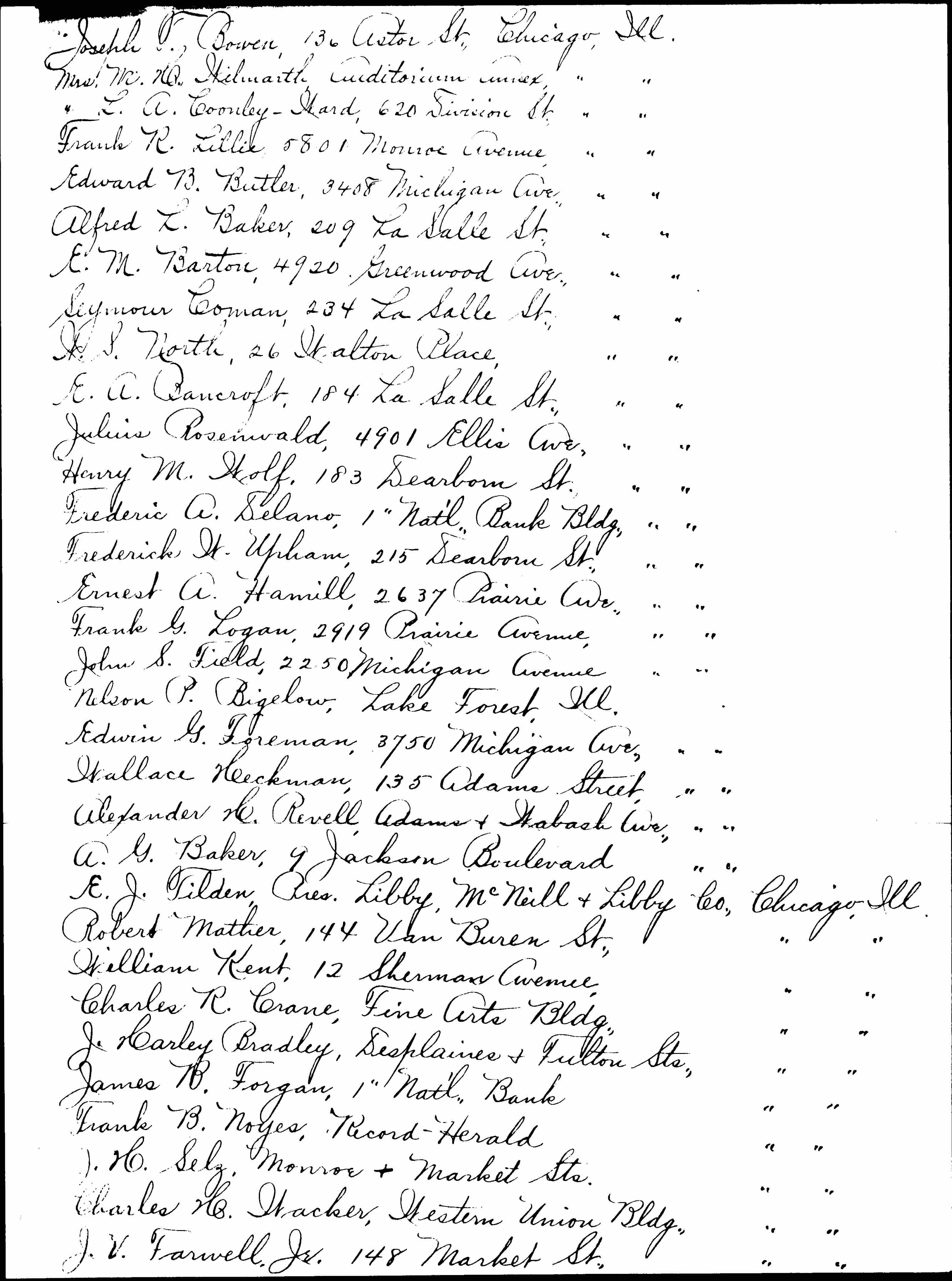 Joseph F. Bowen 136 Astor St. Chicago, Ill.