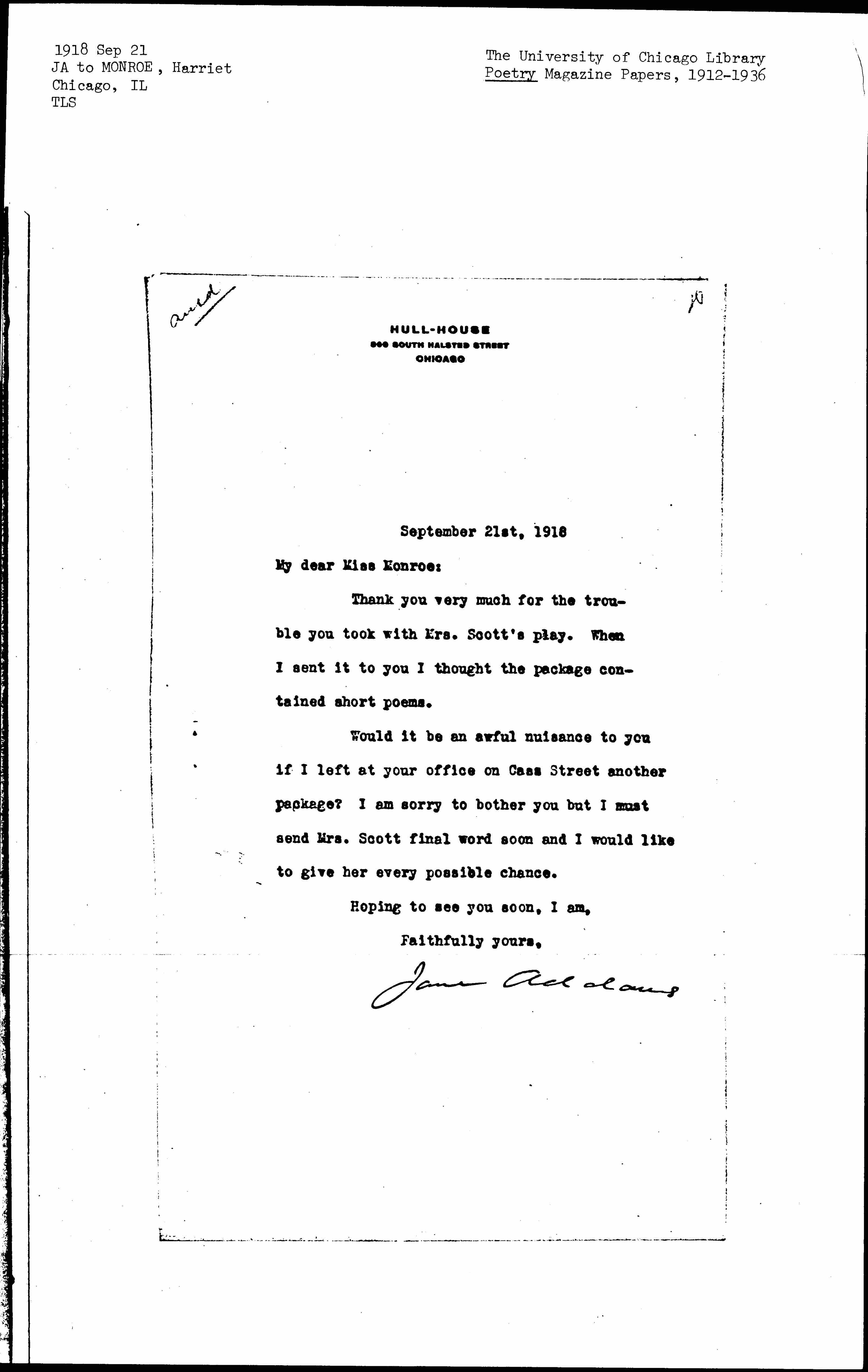 Thank you very much for the trouble you took with Mrs. Scott's play. When I sent it to you I thought the package contained short poems.
