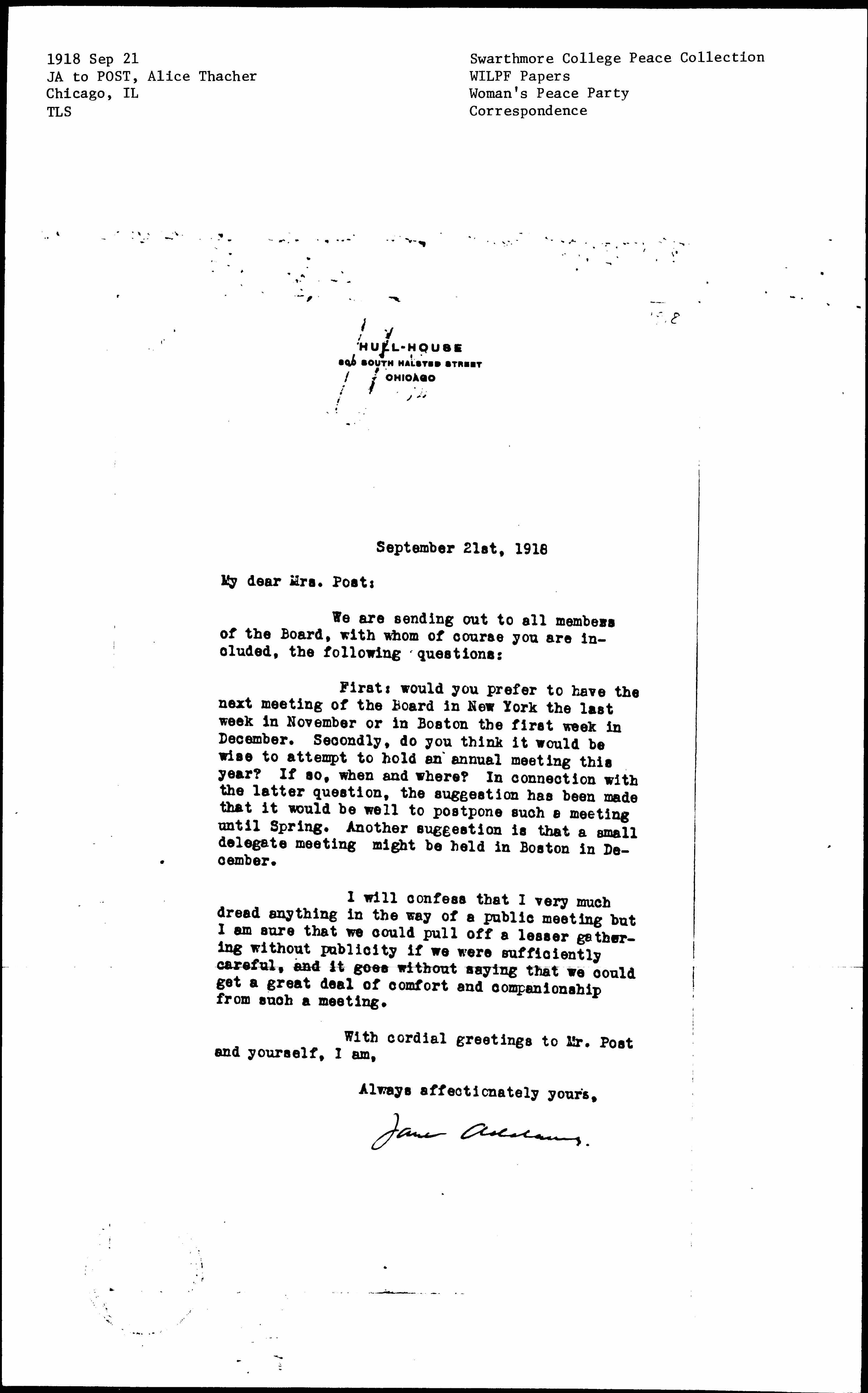 Jane Addams. [signed]