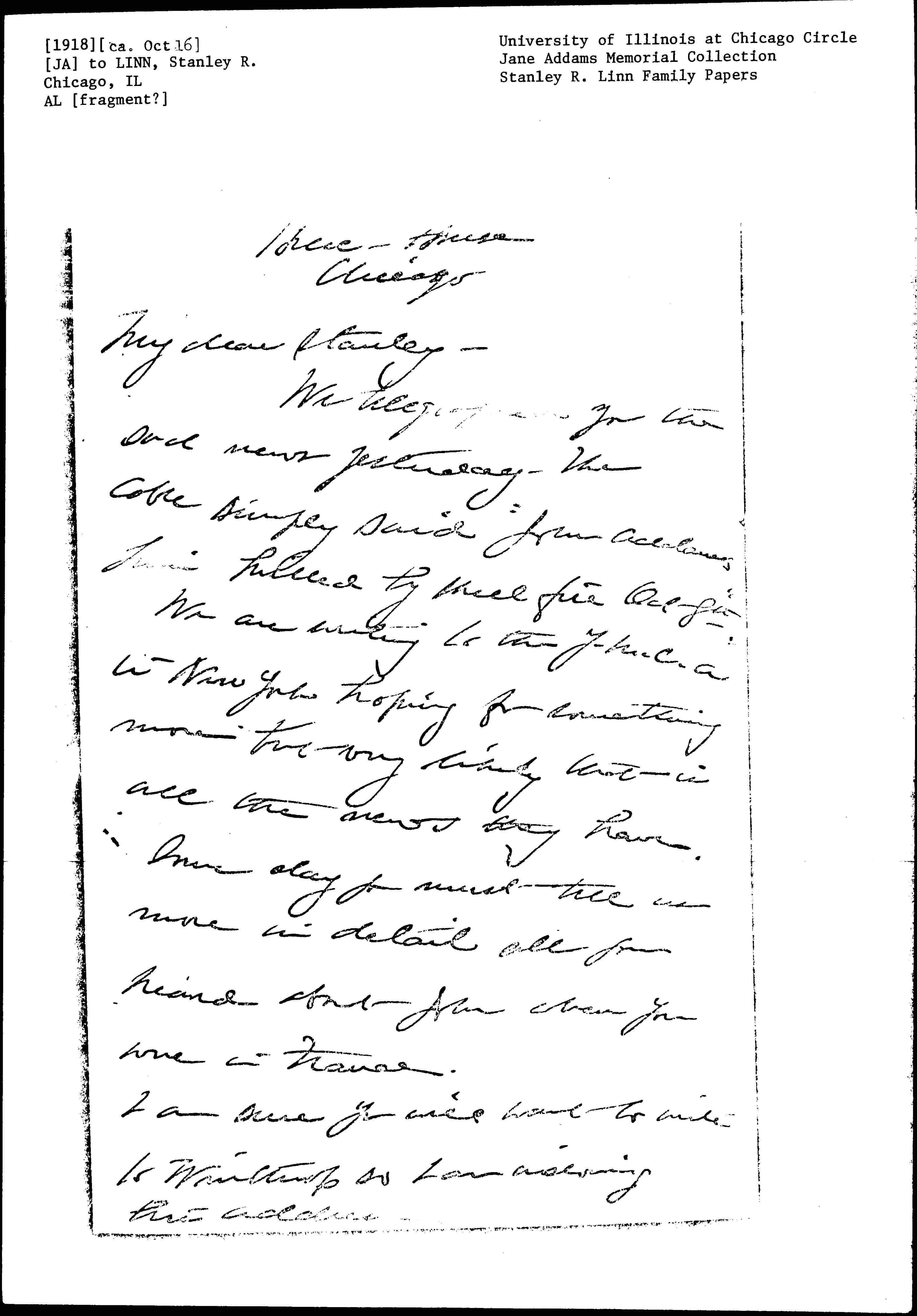 We telegraphed you the sad news yesterday. The cable simply said "John Addams Linn killed by shell fire Oct 8th."