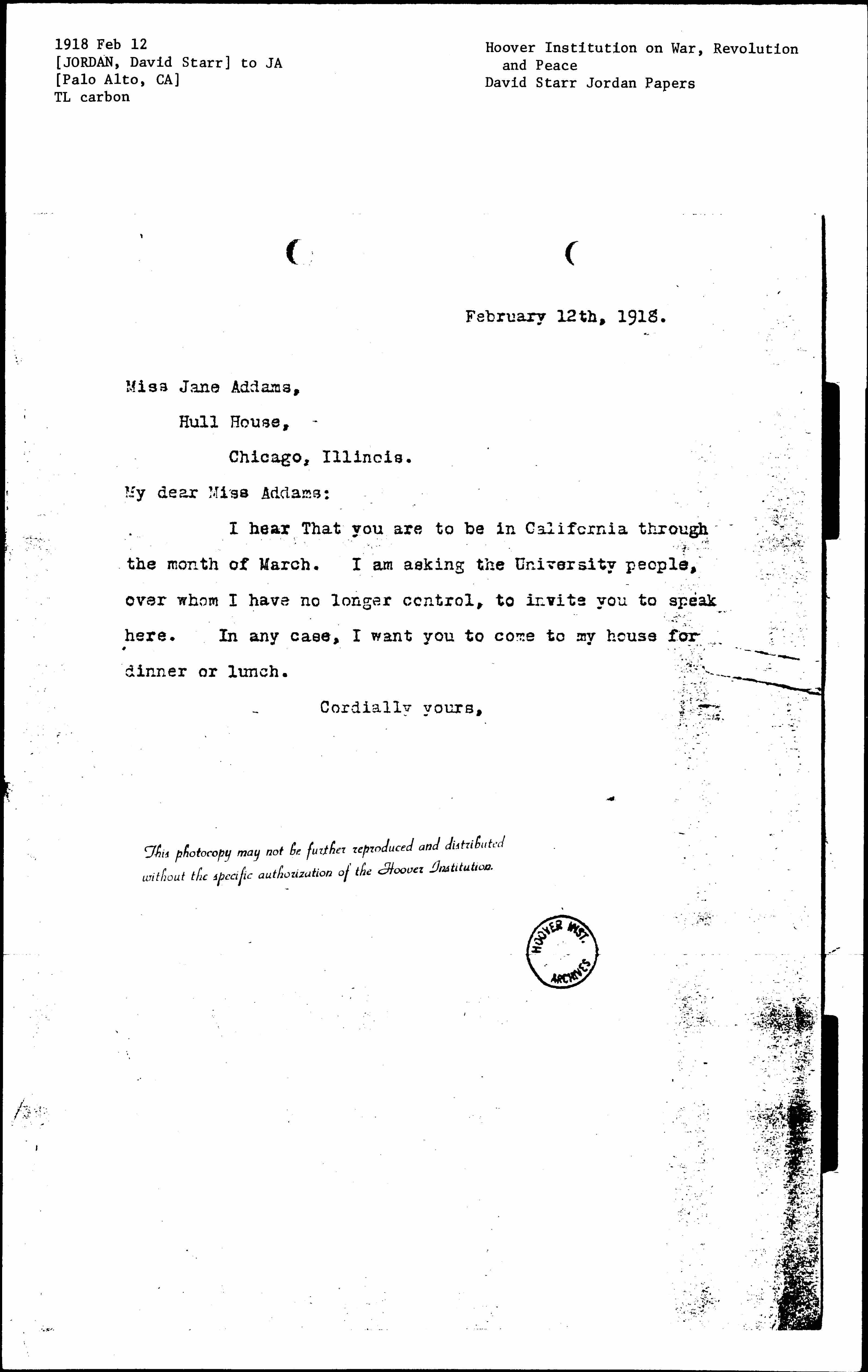 I hear that you are to be in California through the month of March. I am asking the University people, over whom I have no longer control, to invite you to speak here. In any case, I want you to come to my house for dinner or lunch.