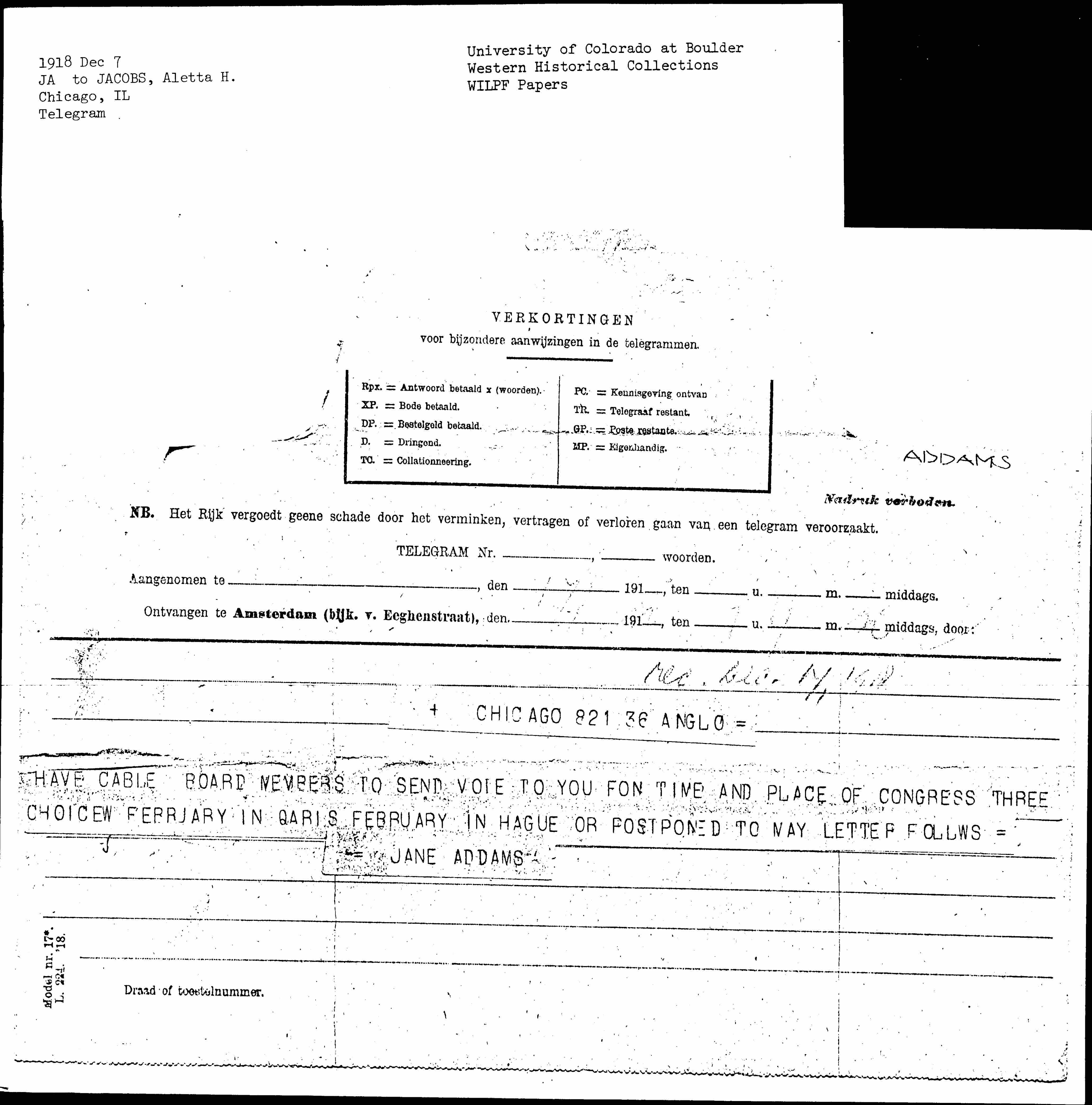 HAVE CABLE BOARD MEMBERS TO SEND VOTE TO YOU [FOR] TIME AND PLACE OF CONGRESS THREE [CHOICES FEBRUARY] IN [PARIS] FEBRUARY IN HAGUE OR POSTPONED TO MAY LETTER [FOLLOWS] =