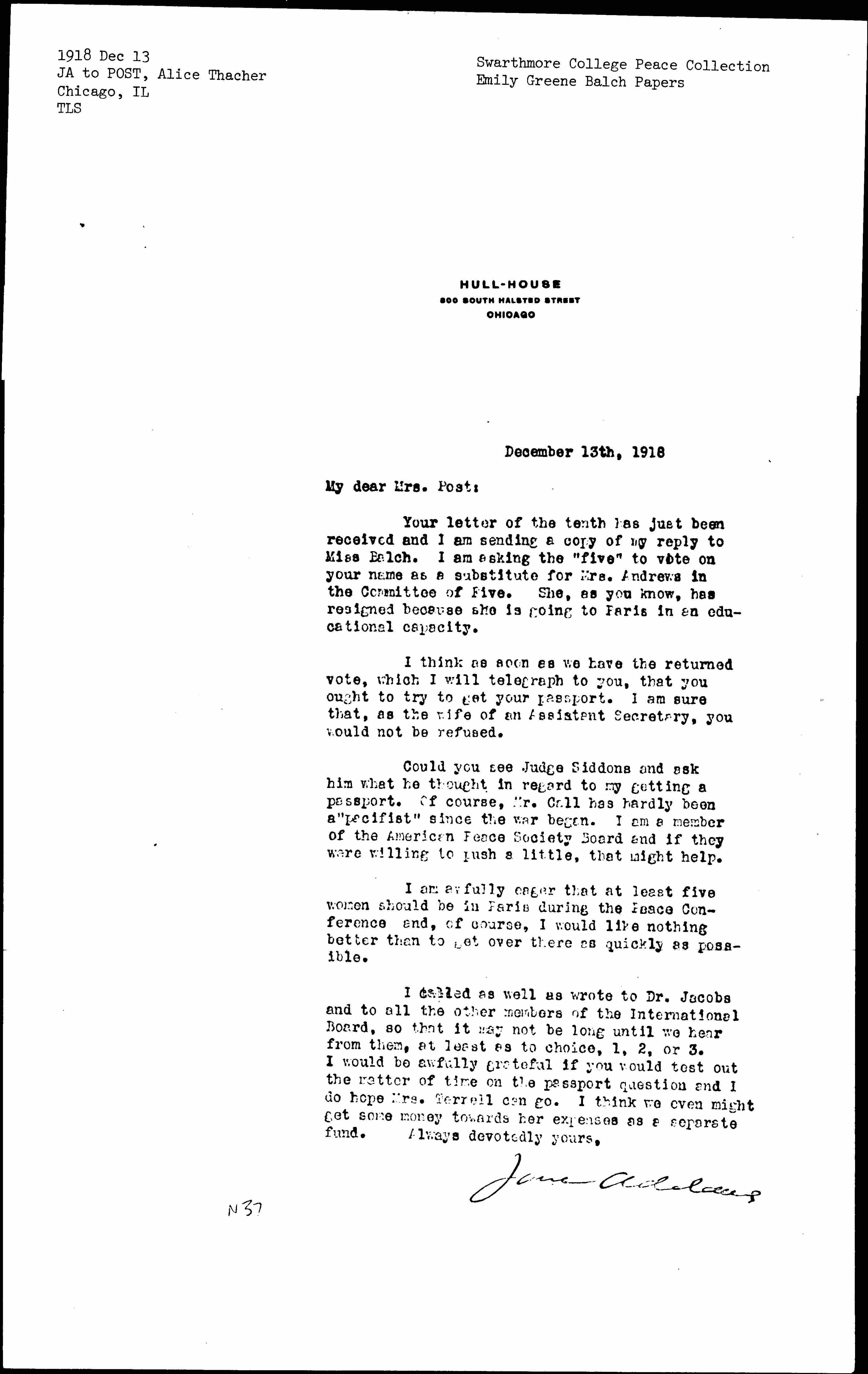 Jane Addams [signed]