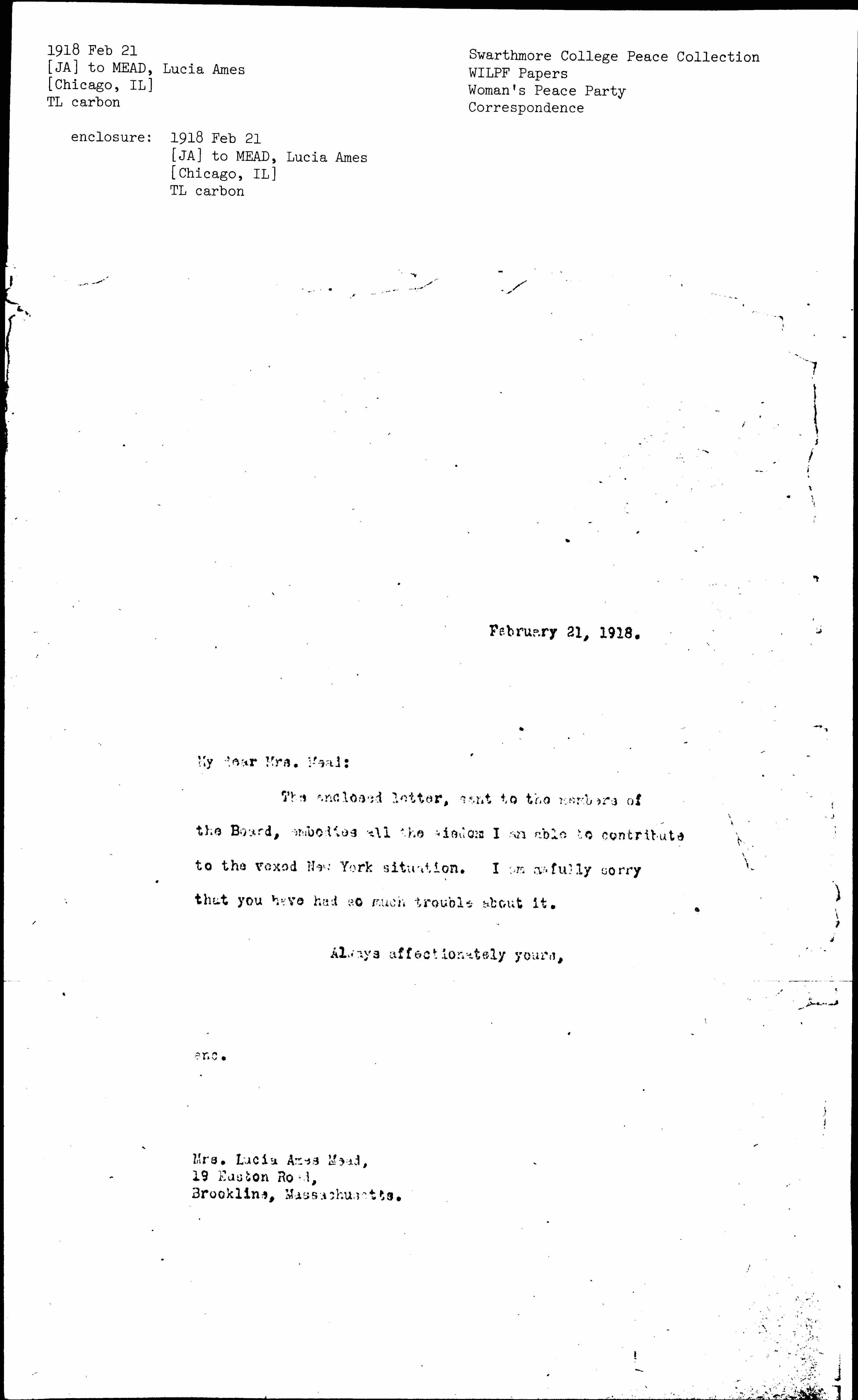 The enclosed letter, sent to the members of the Board, embodies all the wisdom I am able to contribute to the vexed New York situation. I am awfully sorry that you have had so much trouble about it.