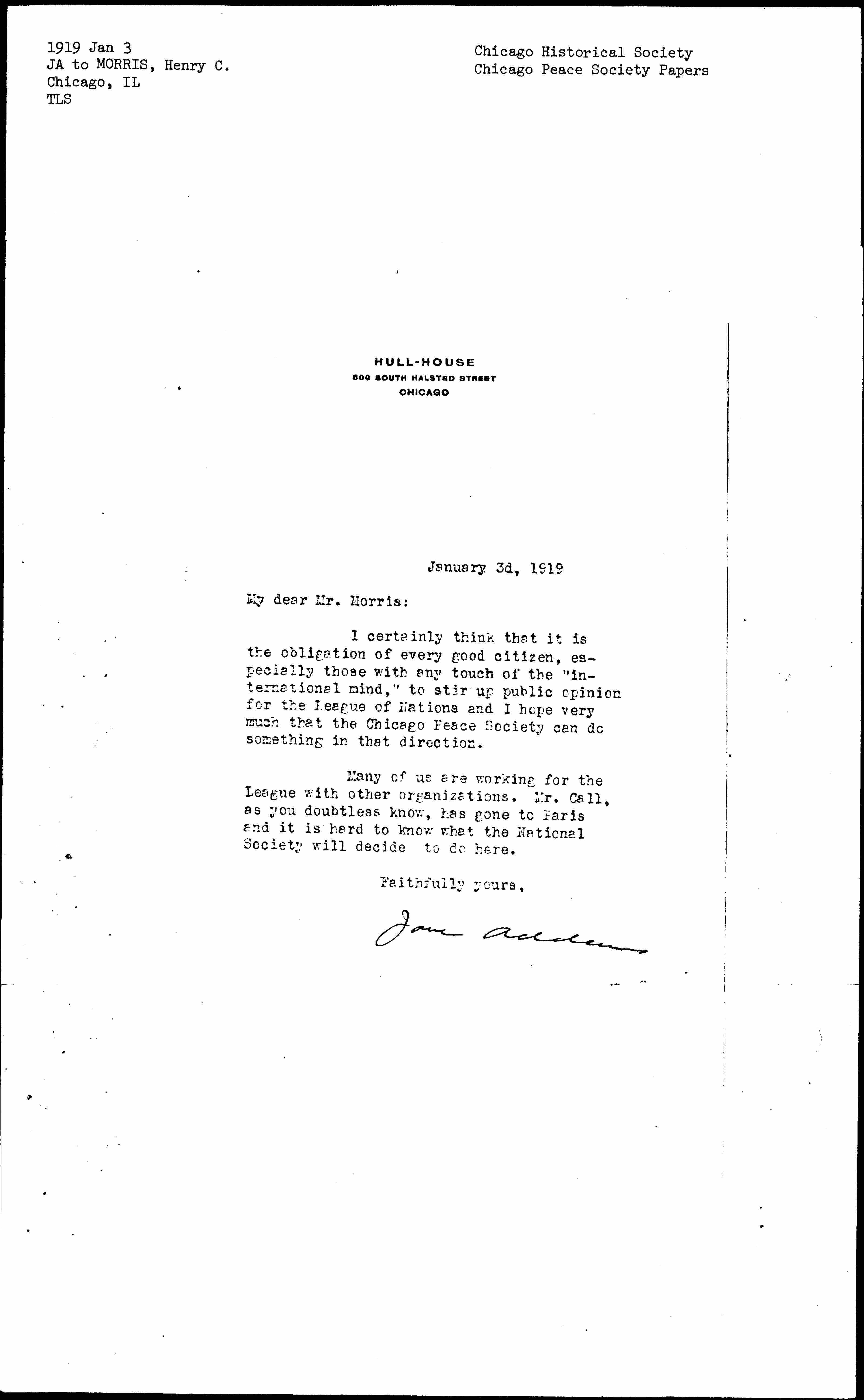 I certainly think that it is the obligation of every good citizen, especially those with any touch of the "international mind," to stir up public opinion for the League of Nations and I hope very much that the Chicago Peace Society can do something in that direction.