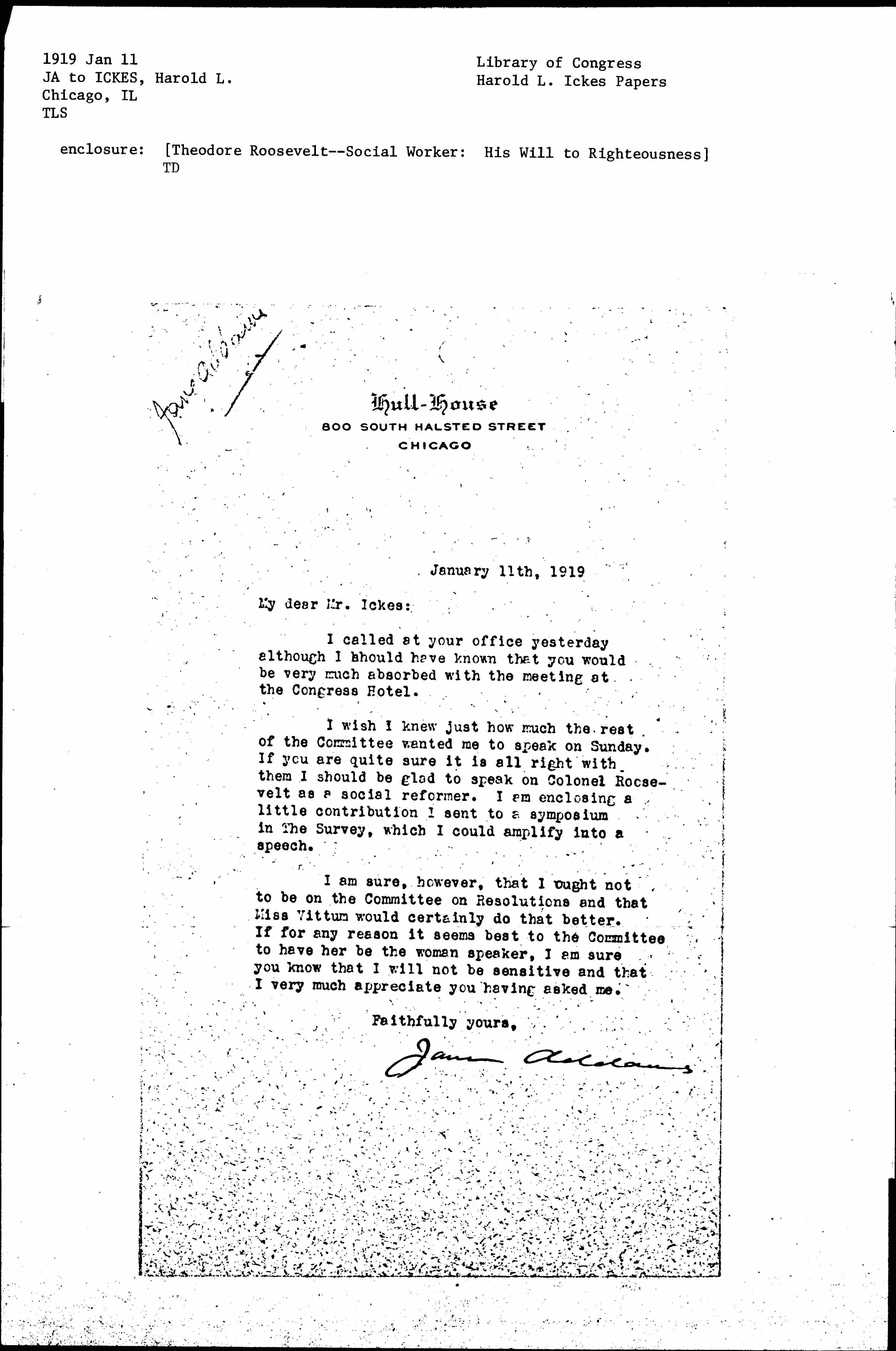 Jane Addams [signed]