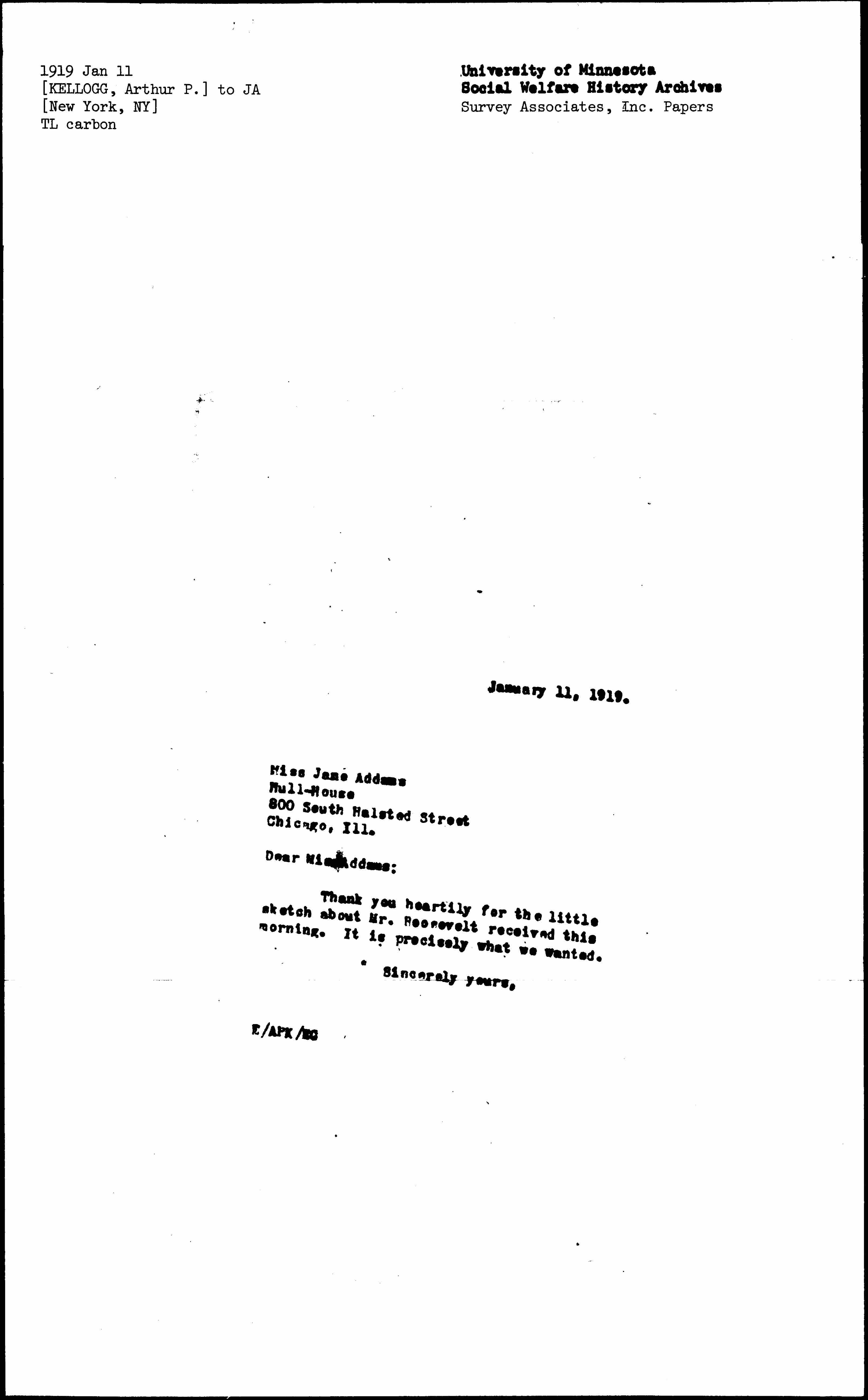 Thank you heartily for the little sketch about Mr. Roosevelt received this morning. It is precisely what we wanted.