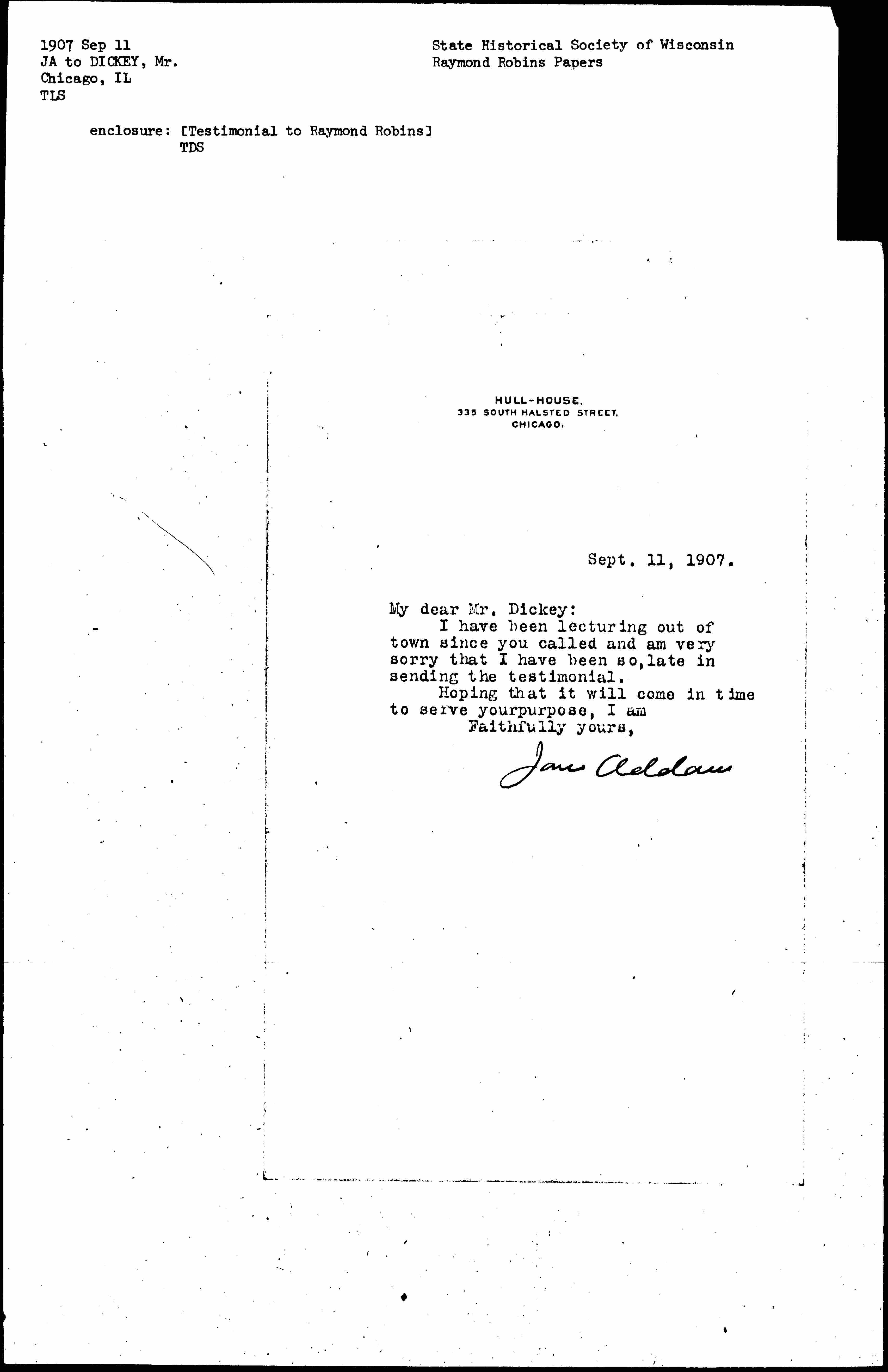 Jane Addams [signed]