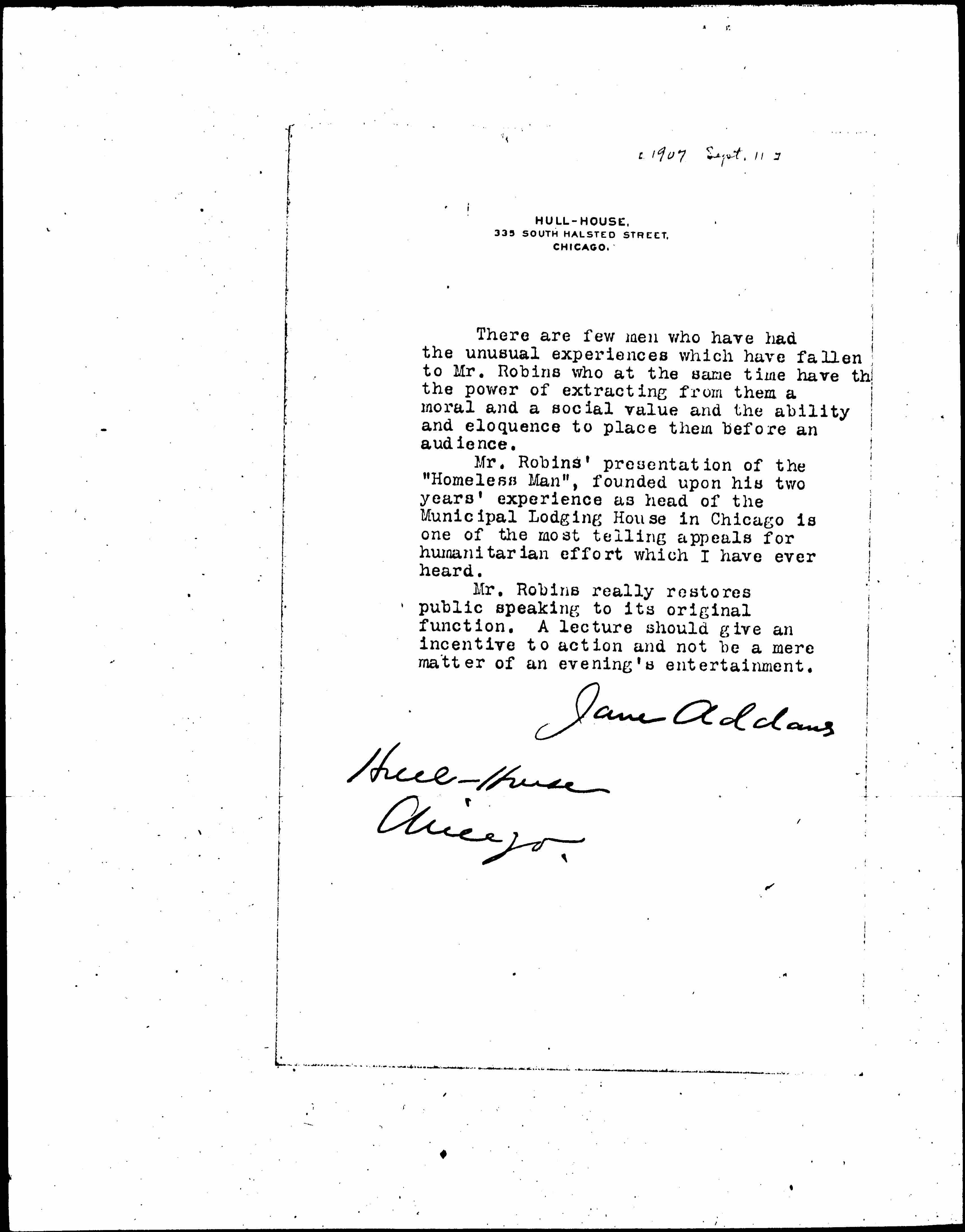 Jane Addams [signed]