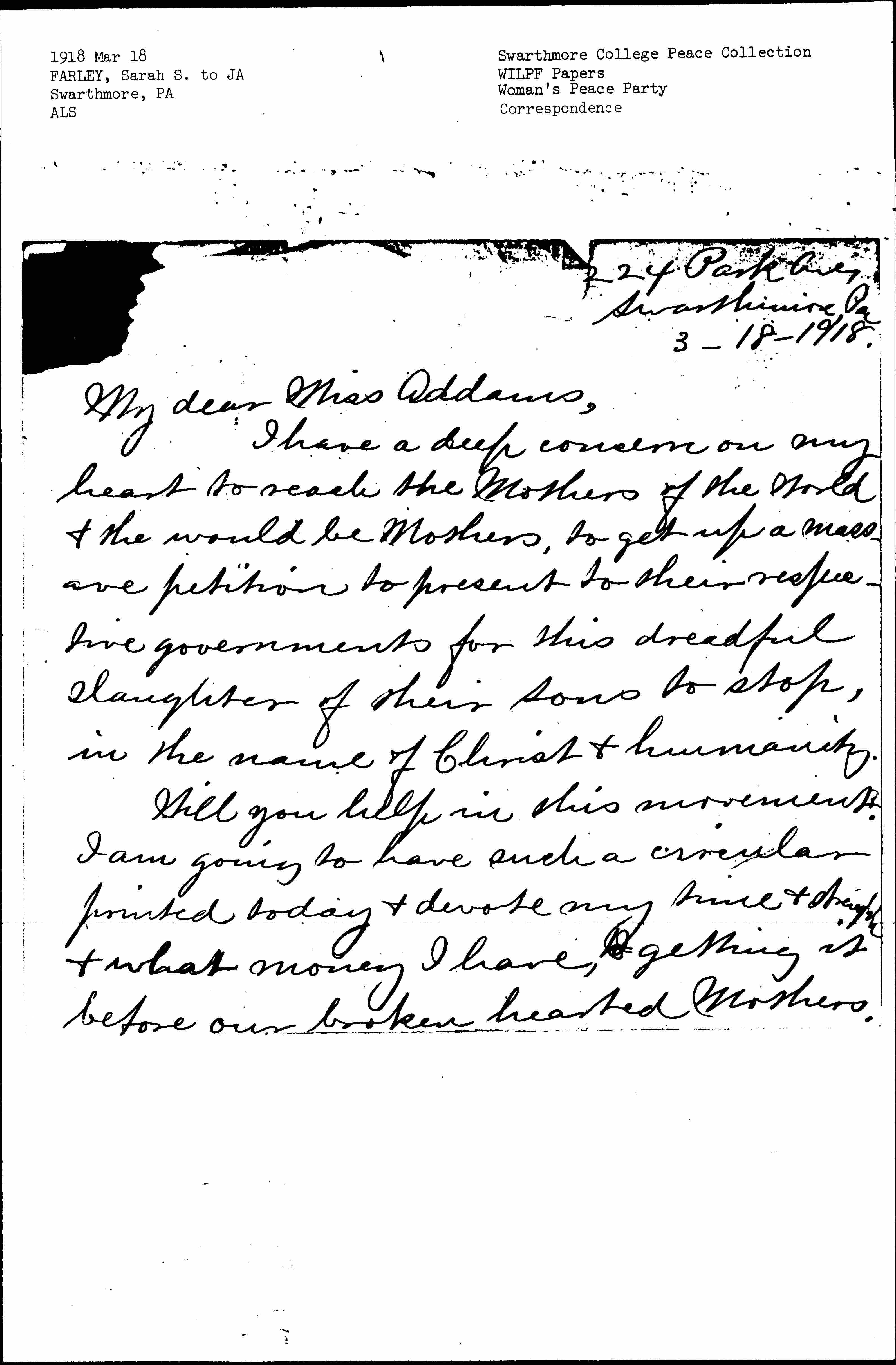 It is a tremendous work but we must put our shoulders to the wheel. You know when the female of any of the species has her young attacked, she is the most deadly & we must get together & kill this war spirit to protect our young.