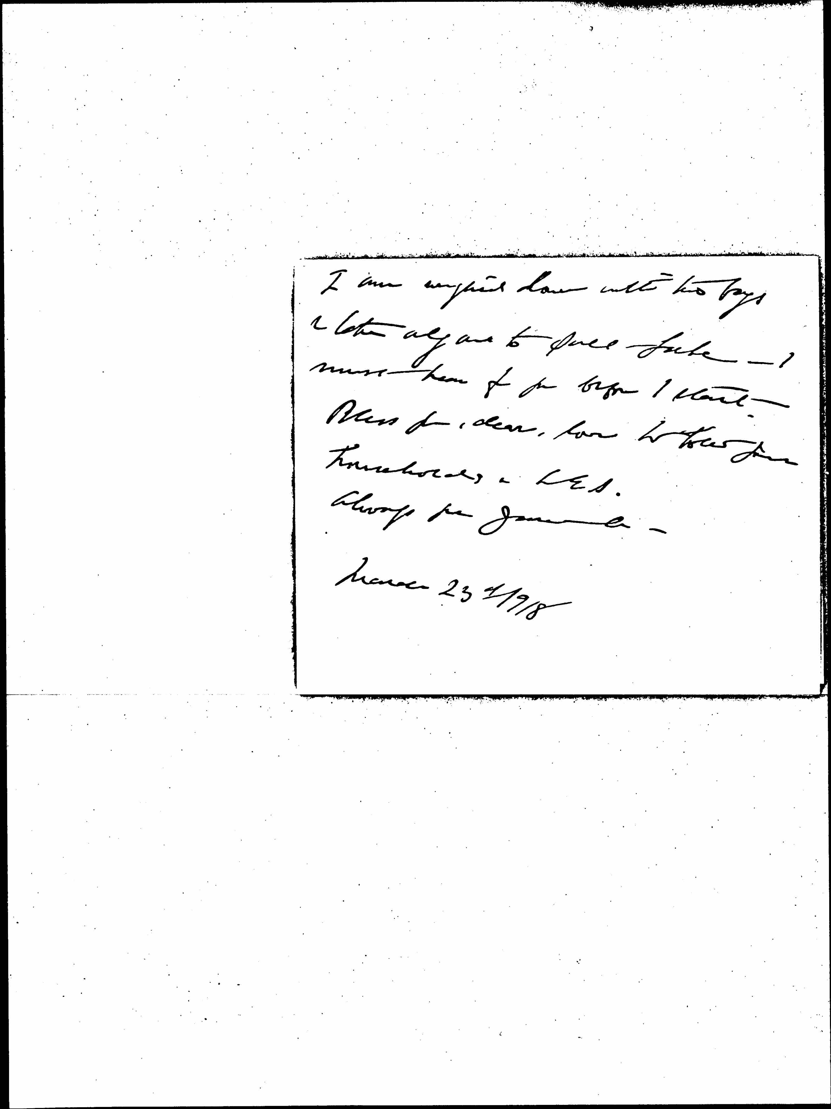 I am weighed down with two bags & take only one to Salt Lake -- I must hear from you before I start. Bless you, dear, love to both your households & to E S.